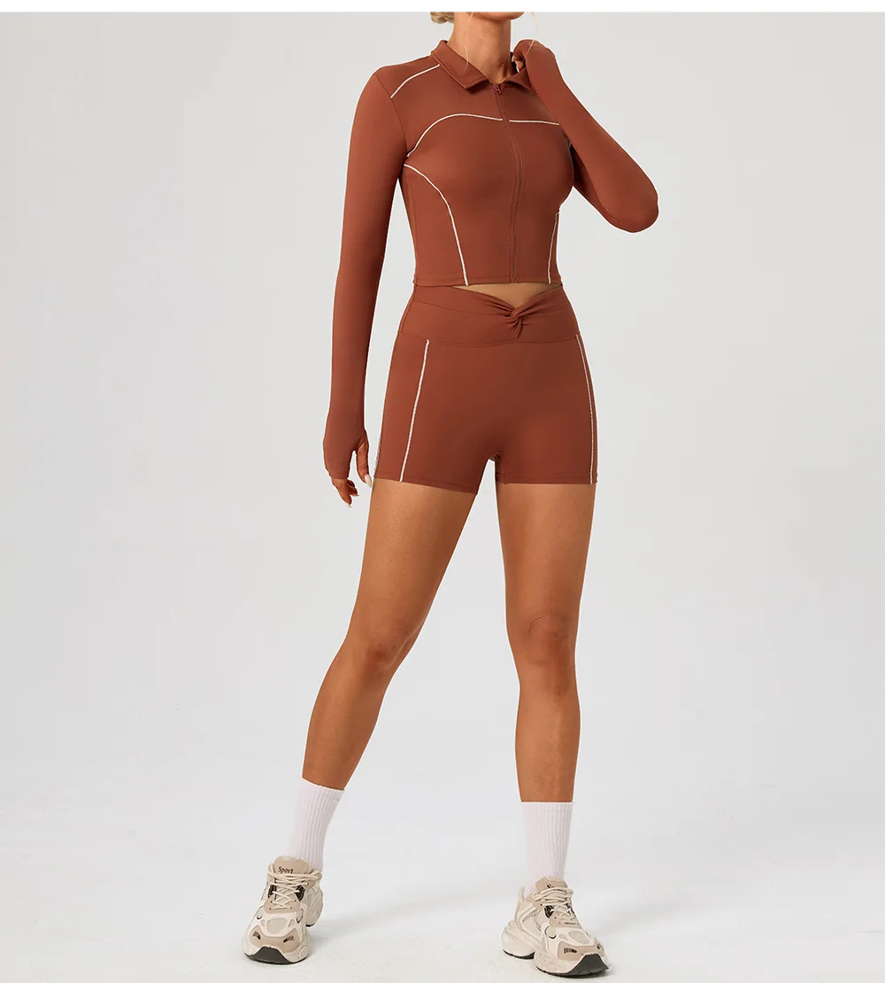 YISHENHON New Arrivals Quick-drying Women's Tight Running Sports Fitness Yoga Jacket Activewear Zip Long Sleeve Workout Crop Top