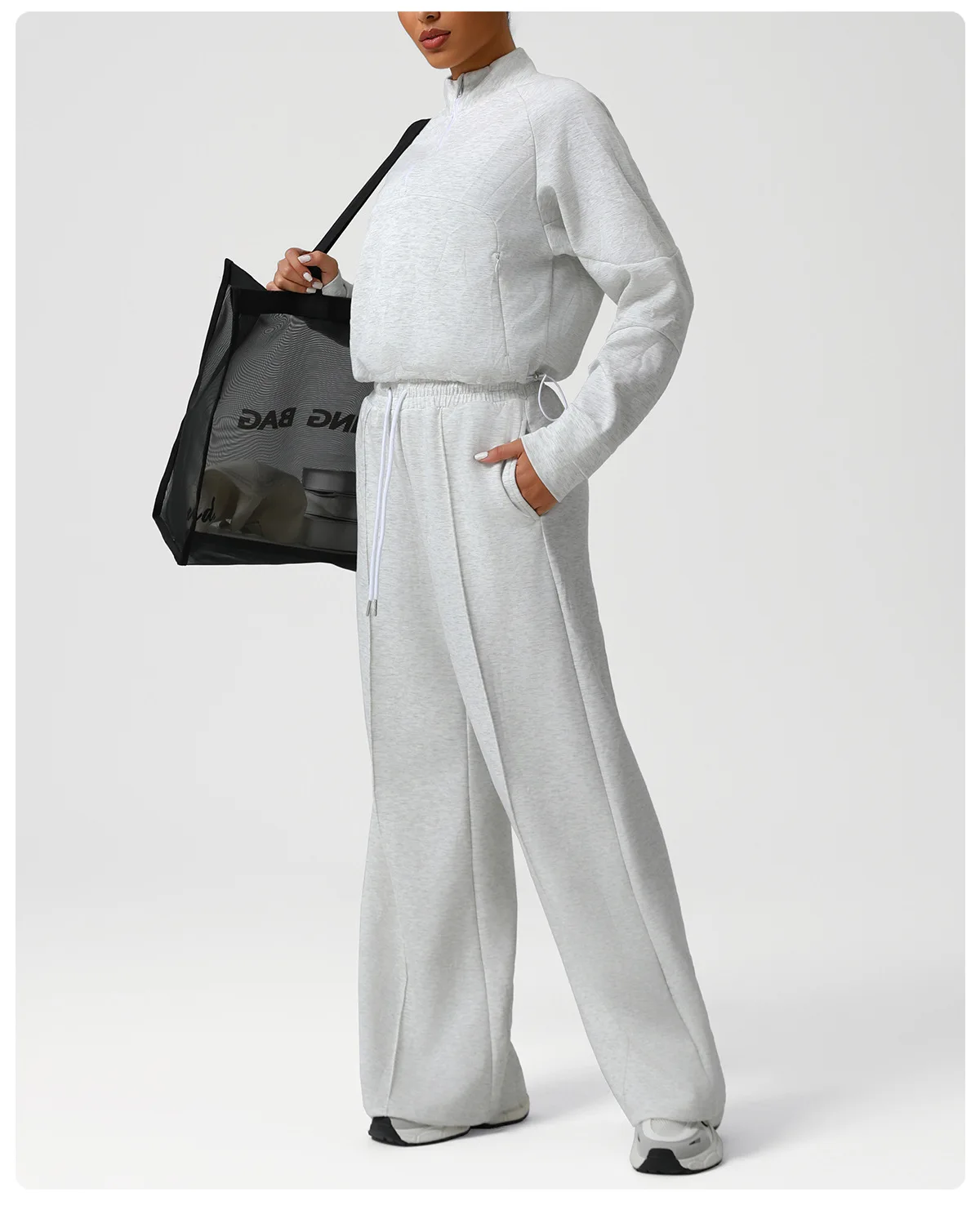 Customized Logo Gym Workout Fitness Sports Activewear Set Loose Hoodie Drawstring Pants Sportswear Women Warm Yoga Set