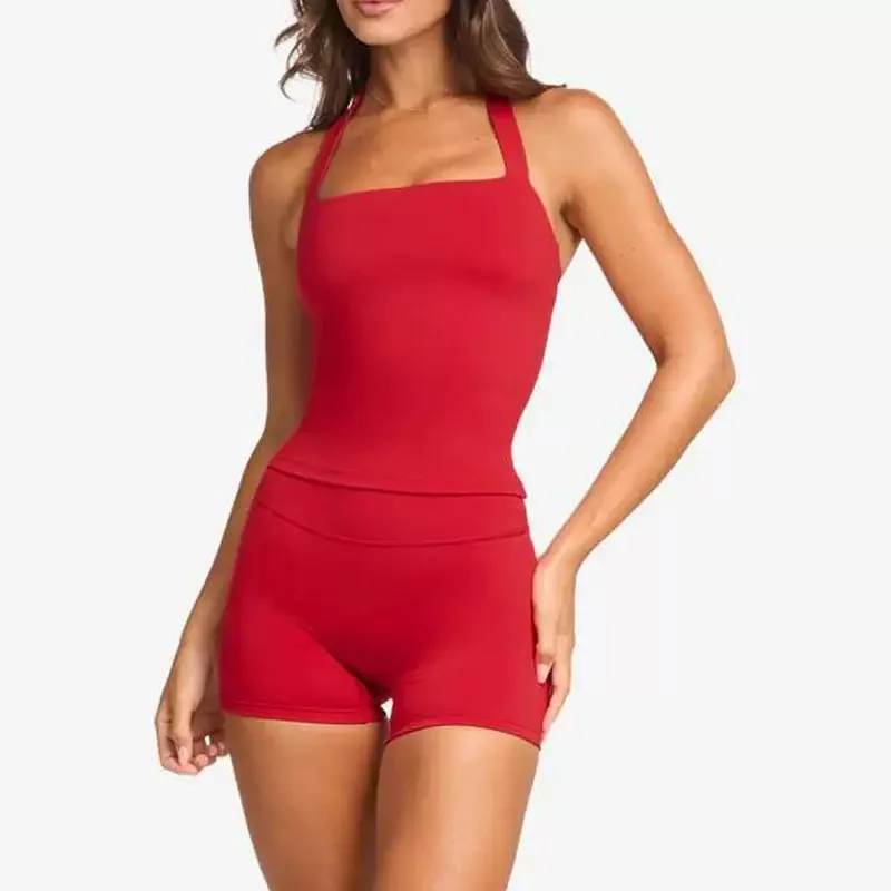 Custom Women's Gym Fitness Sets Workout Yoga Sports Wear Activewear Sportswear with High Waist Shorts 2 Pcs Yoga Sets for Women