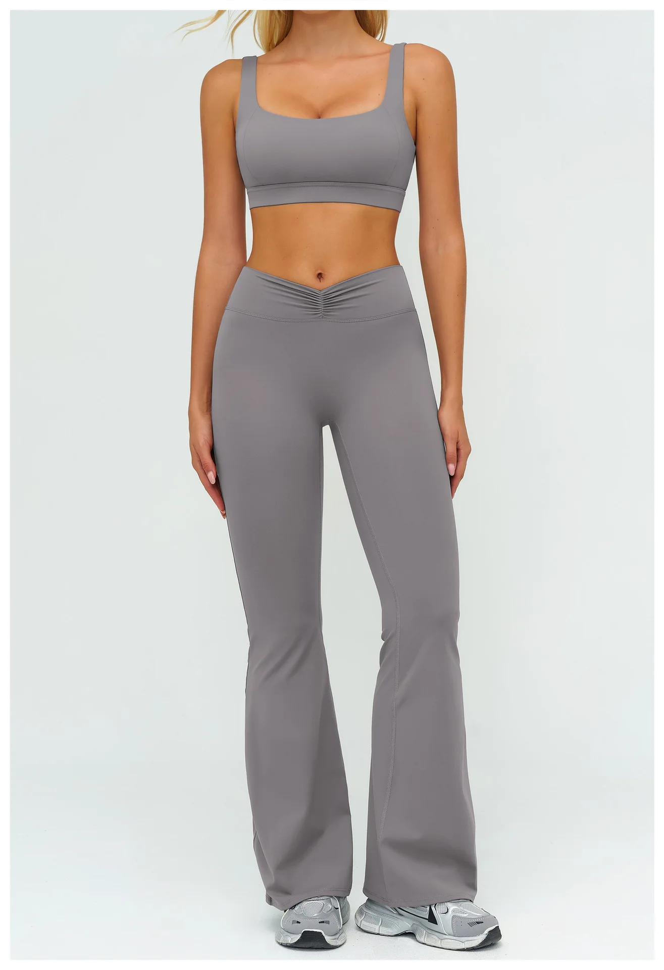 YISHENHON Recyclable Fabric Quick Dry Yoga V Waist Gym Leggings Running Workout Wide Leg Pants Flare Woman Sport Pants