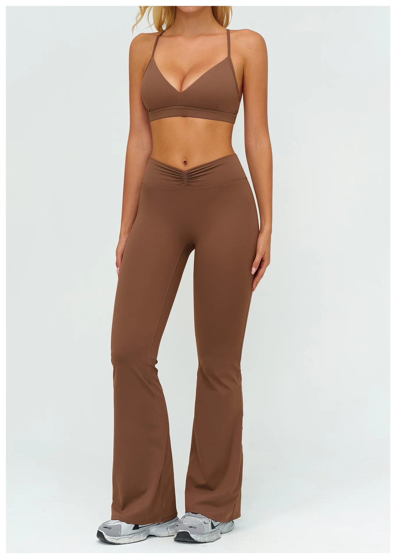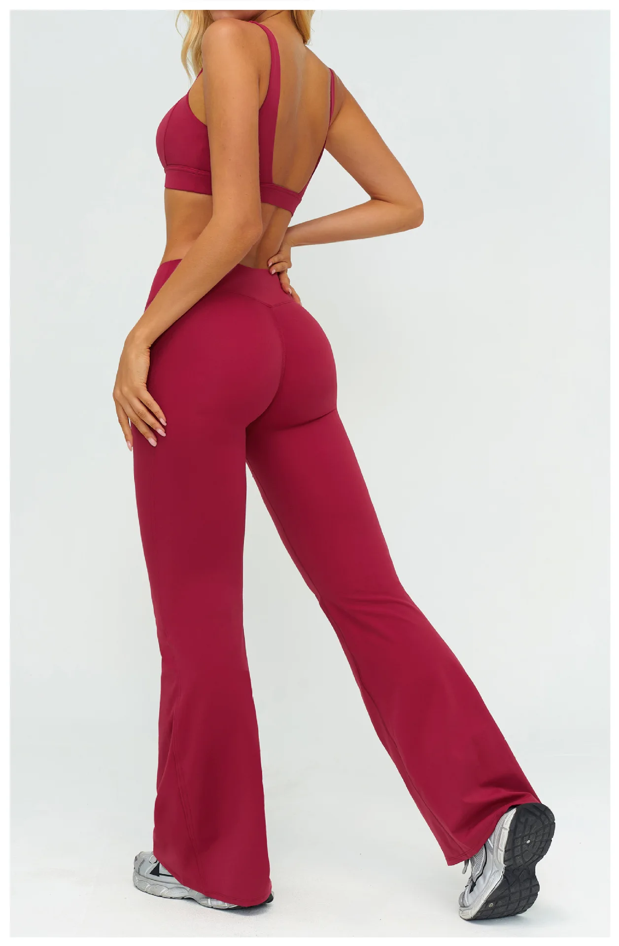 YISHENHON Recyclable Fabric Quick Dry Yoga V Waist Gym Leggings Running Workout Wide Leg Pants Flare Woman Sport Pants
