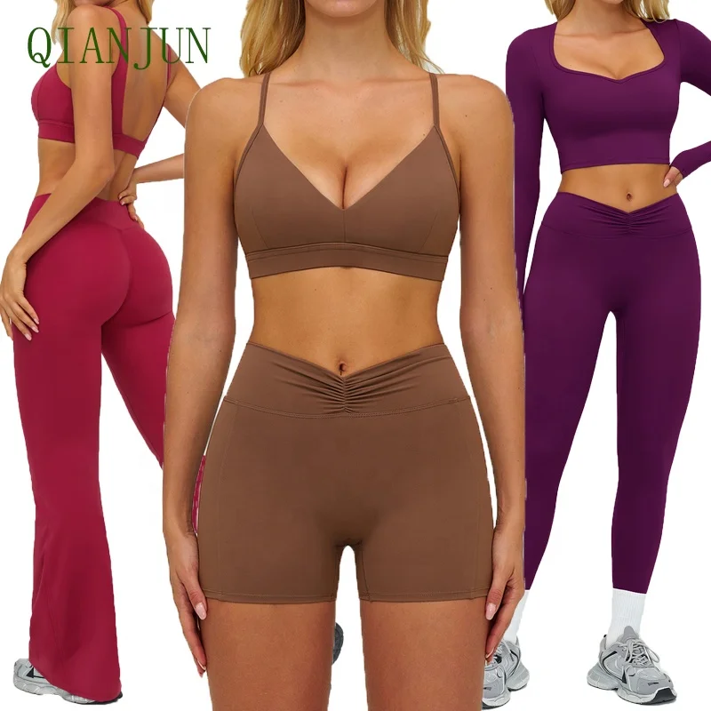 High Elastic Long Sleeve Crops Top Gym Fitness Yoga Tracksuit Set Y-Shaped Back Adjustable Shoulder Straps Yoga Suit