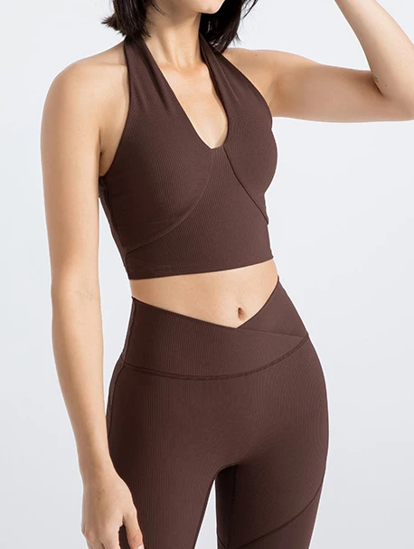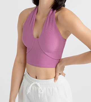 Wholesale Shockproof Fitness Workout Bra for Women Deep V Neckline Sexy Sport Bra Strap Crop Top Yoga Bra With Padded