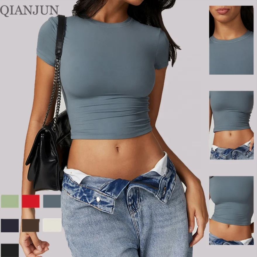 Wholesale Seamless Activewear Womens Short Sleeve T-Shirts Crop Tops Slim Fit Crew Neck Gym Workout Tops Gym Fitness Wear