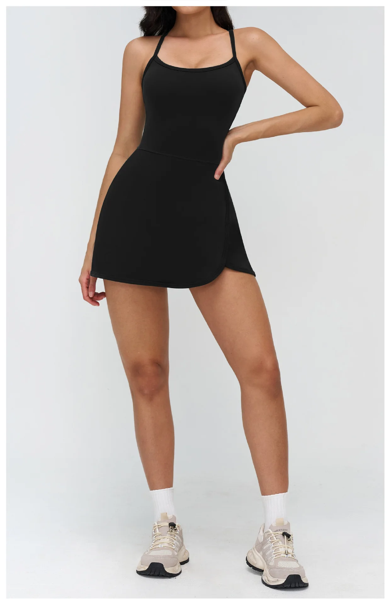Custom Logo Women One Piece Golf Tennis Jumpsuit with Inner Gym Fitness Yoga Wear Breathable Adjustable Shoulder Straps Skirt