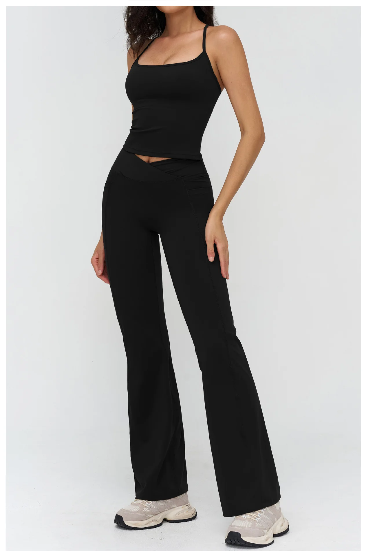 YISHENHON Recyclable Fabric Quick Dry Yoga V Waist Gym Leggings Running Workout Wide Leg Pants Flare Woman Sport Pants