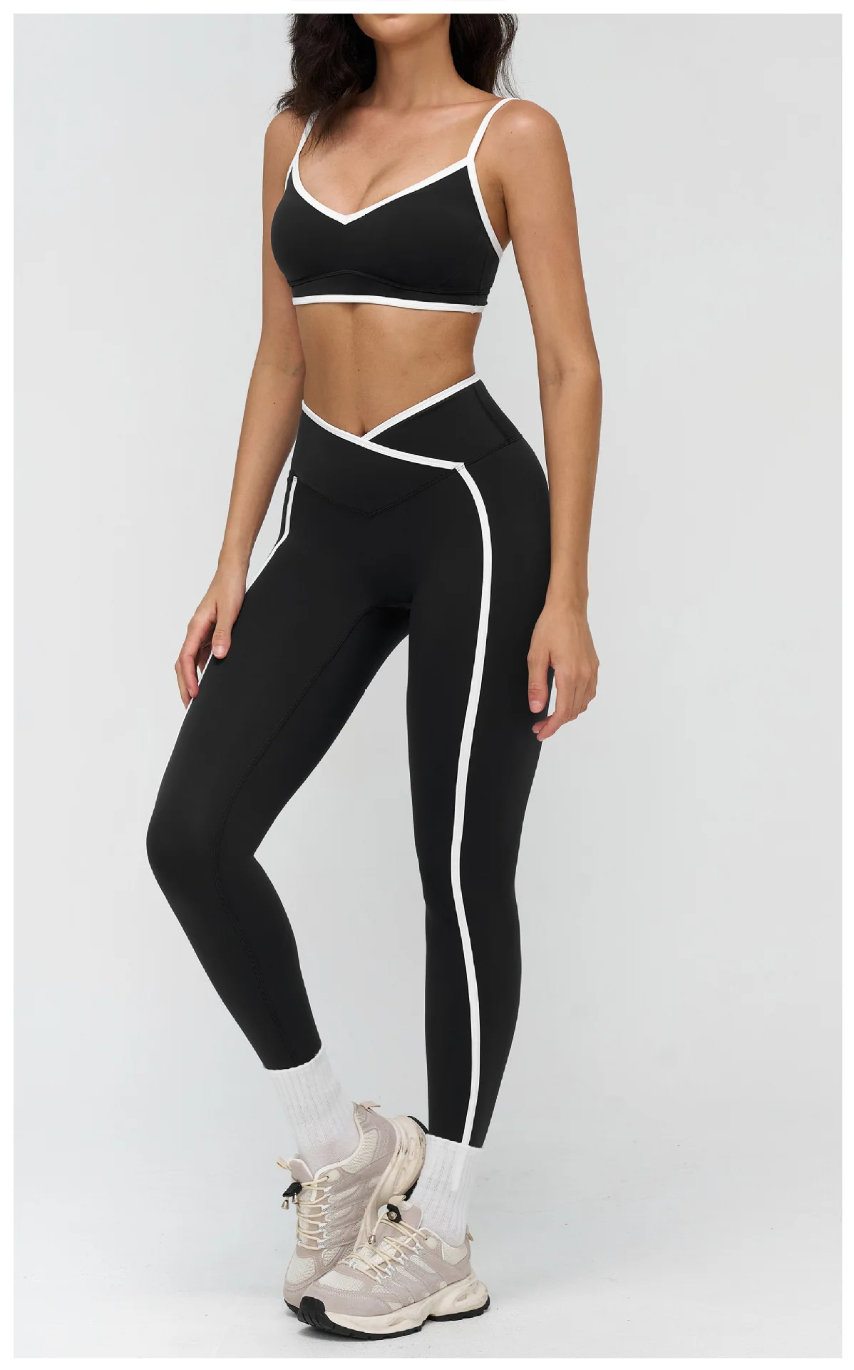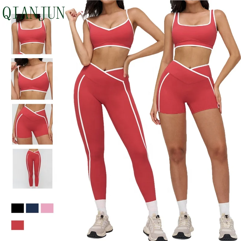 Wholesale Women High Quality Quick Dry Sportswear Gym Yoga Set Square Neckline Contrast Color Running Fitness Sports Suit