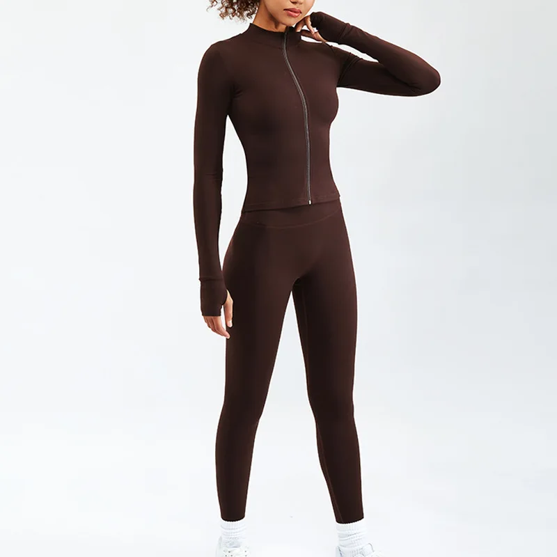 Women Yoga Set Workout Clothes Sports Gym Legging Seamless Fitness Zip Long Sleeve Crop Top Yoga Suit Sportswear
