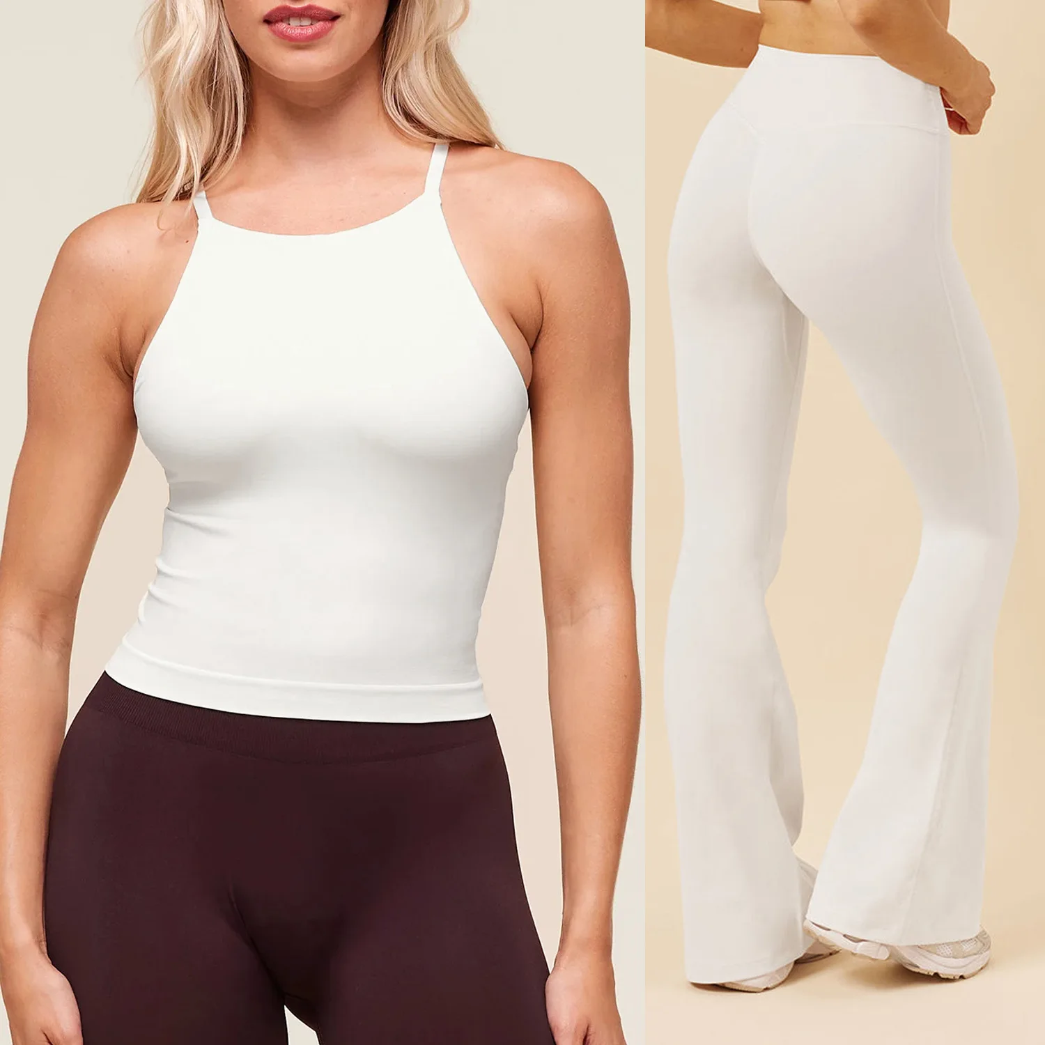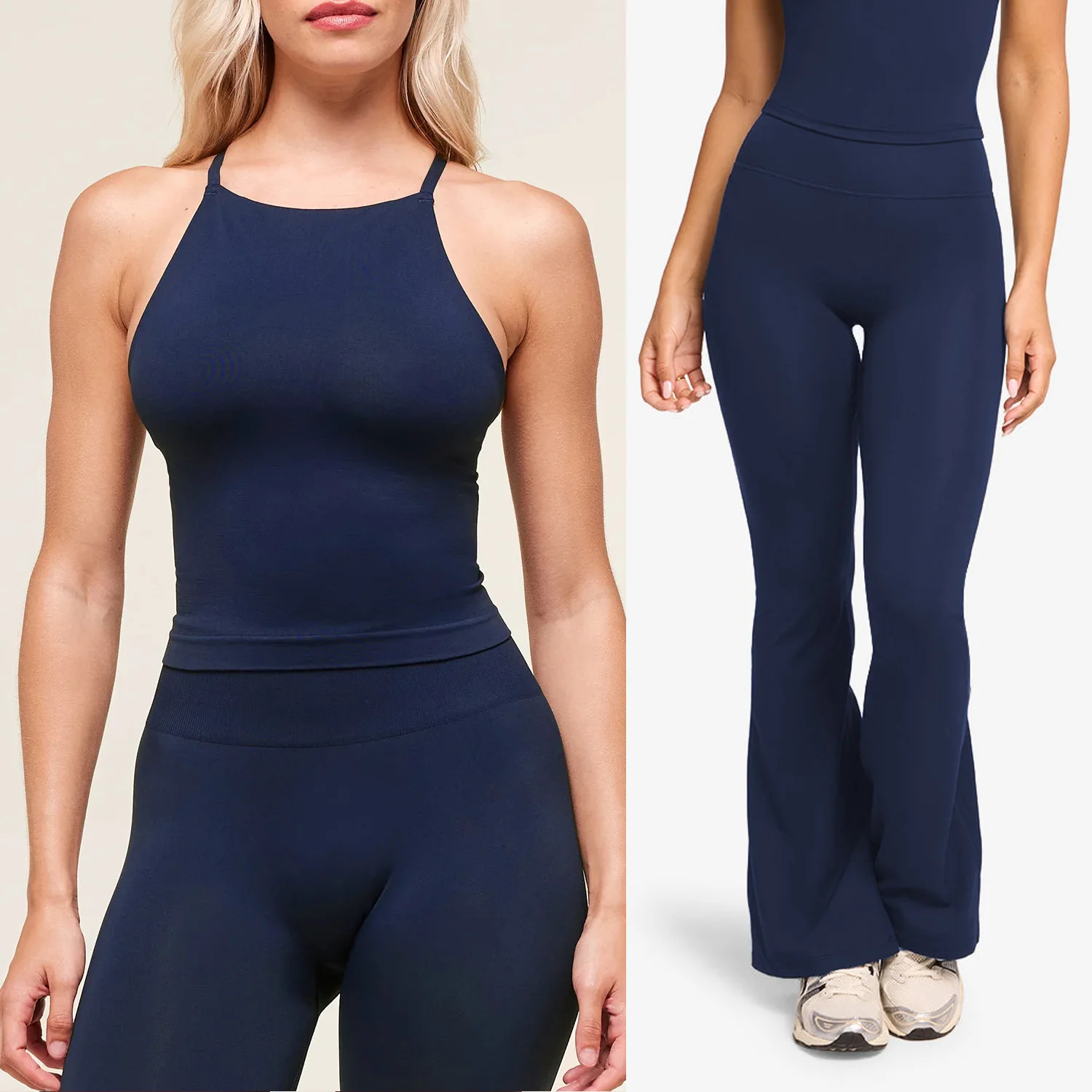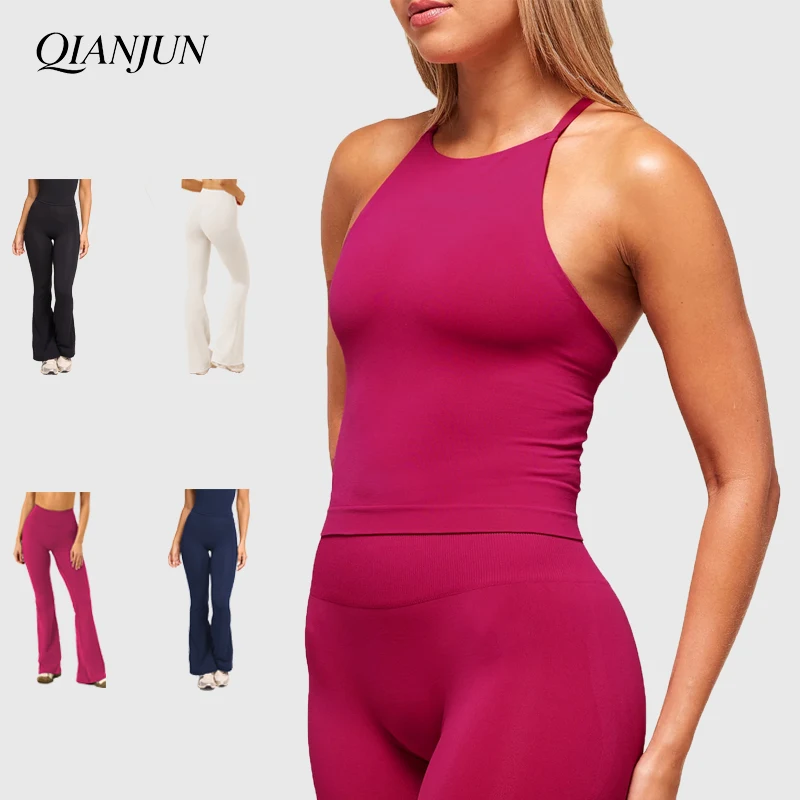 2026 New Gym Fitness Sets Adjustable Cross Shoulder Straps Tank Top Sport Bra High Waist Pants Workout Wear Yoga Set