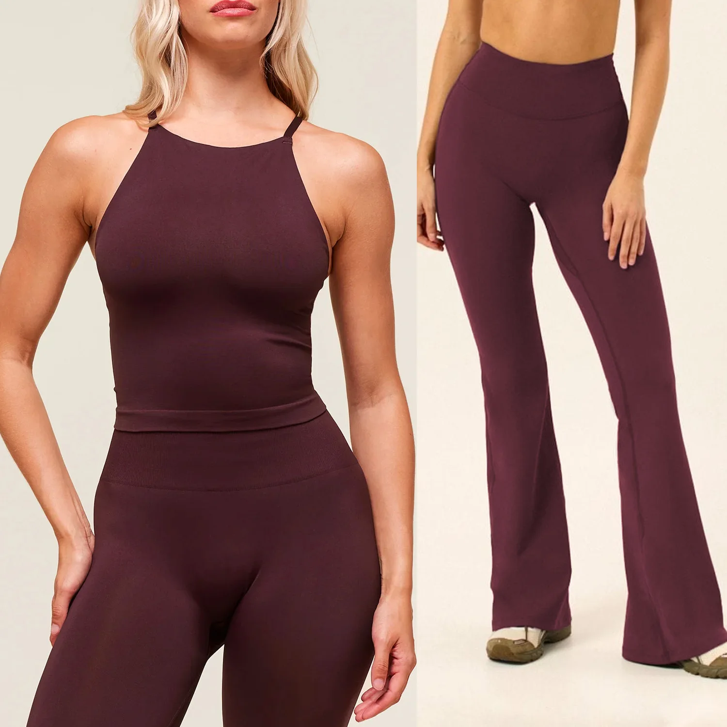 YISHENHON Recyclable Fabric Quick Dry Yoga V Waist Gym Leggings Running Workout Wide Leg Pants Flare Woman Sport Pants