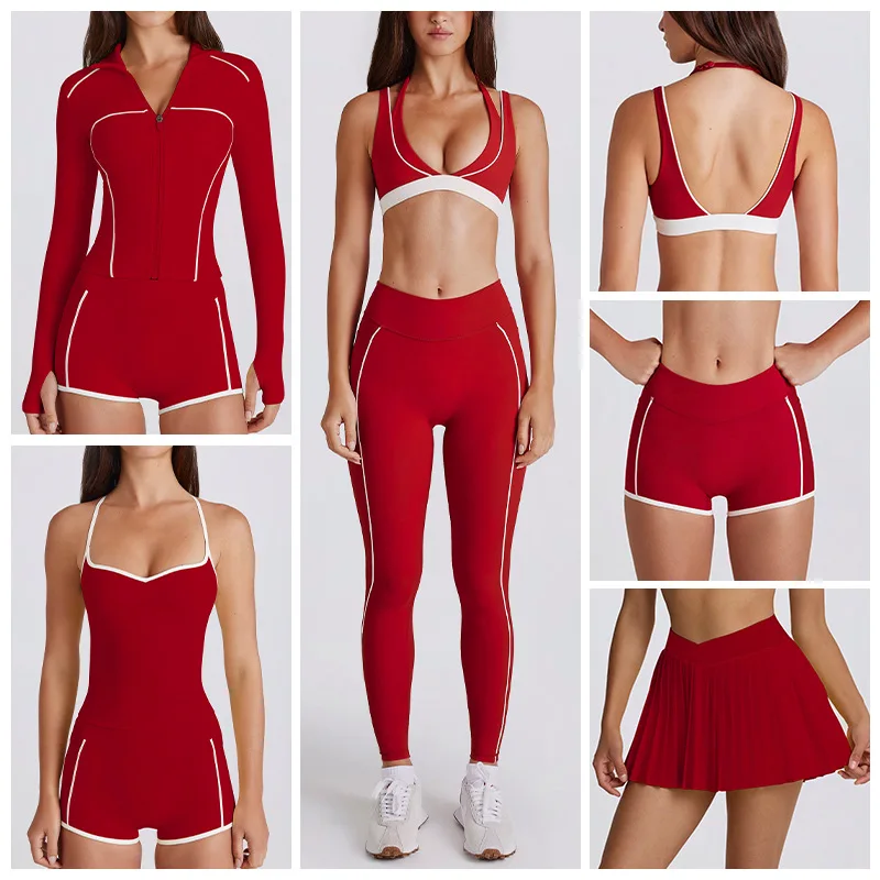 Custom High Quality 6-Piece Solid Breathable Fitness Sportswear Gym Leggings Activewear Sports Shorts Bra Women Workout Yoga