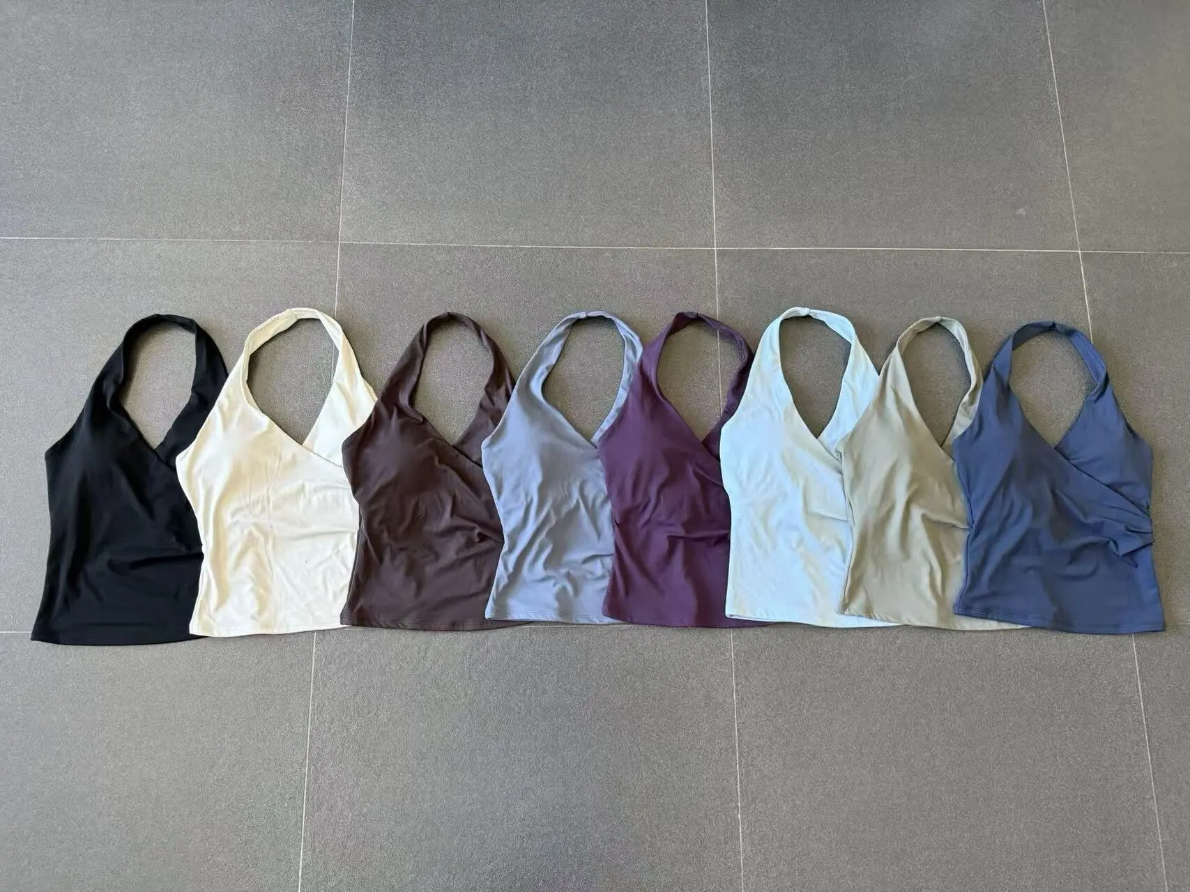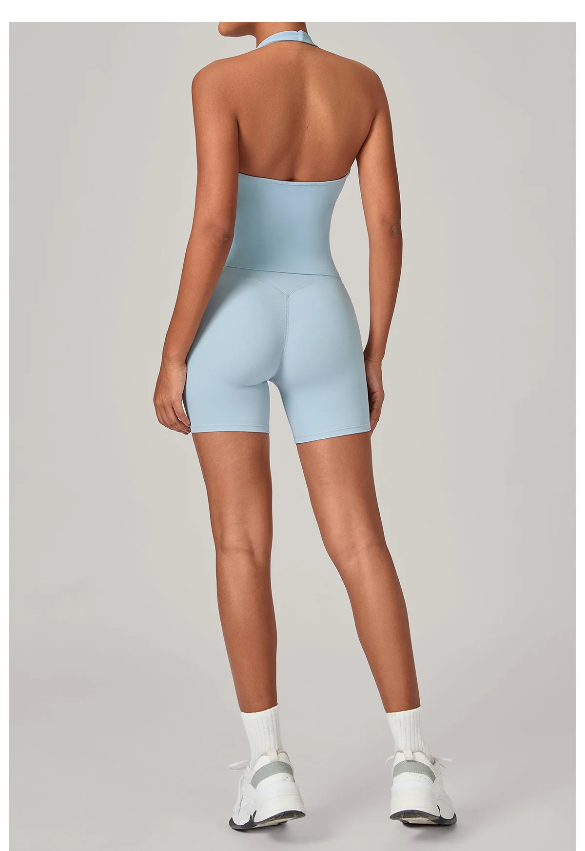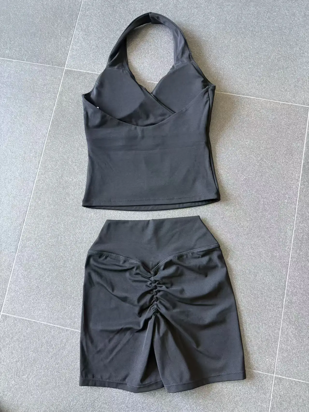 Women's Sexy Workout Gym Suit Quick Dry Naked Feeling Yoga Set Custom Logo Halter Crop Top Shorts Breathable Solid Fitness Quick
