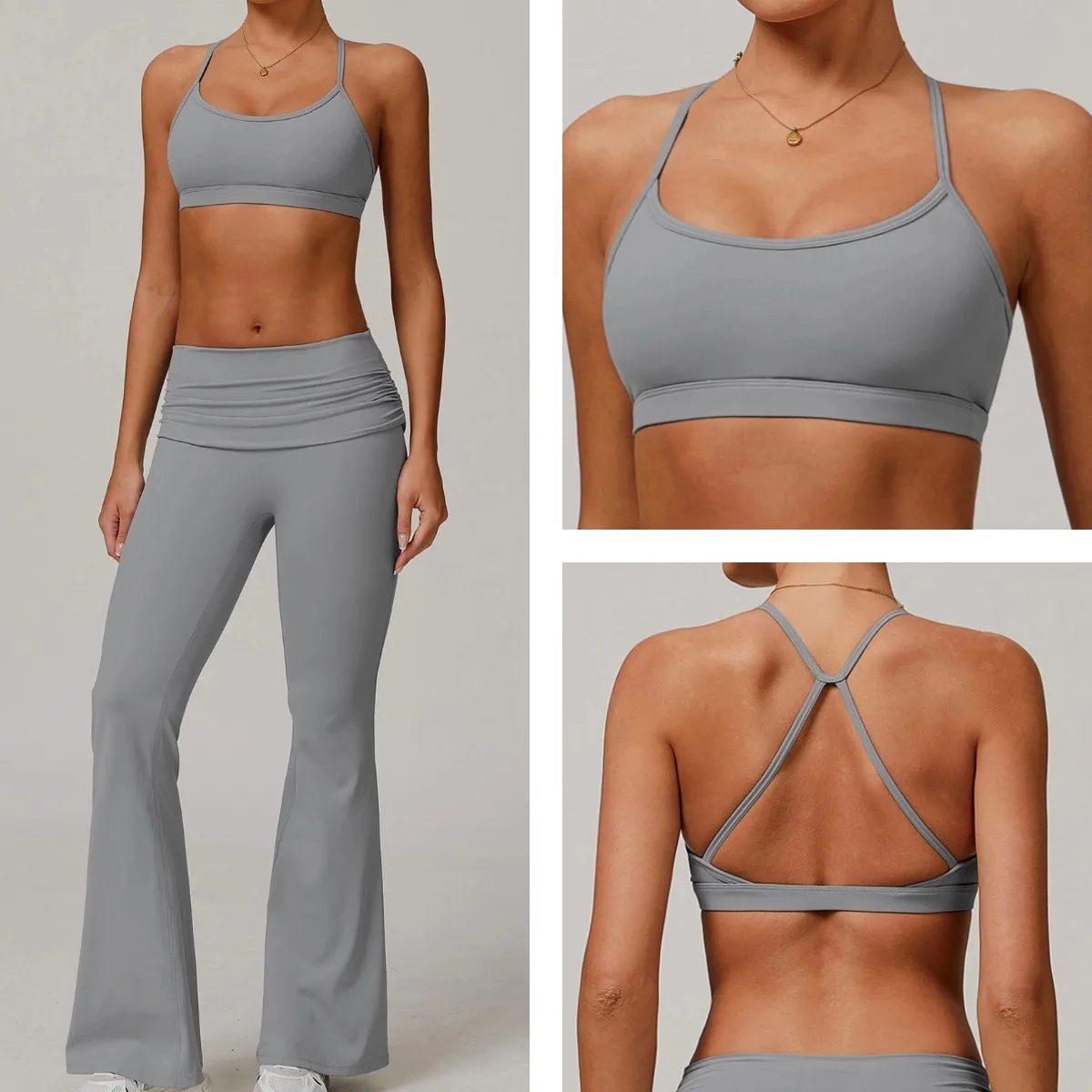 YISHENHON Recyclable Fabric Quick Dry Yoga V Waist Gym Leggings Running Workout Wide Leg Pants Flare Woman Sport Pants