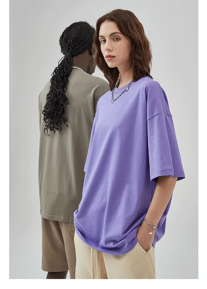 YISHENHON 100% Cotton Oversized Printed Embroidered Plain Tee for Men Custom Size Heavyweight 230gsm Breathable High Quality