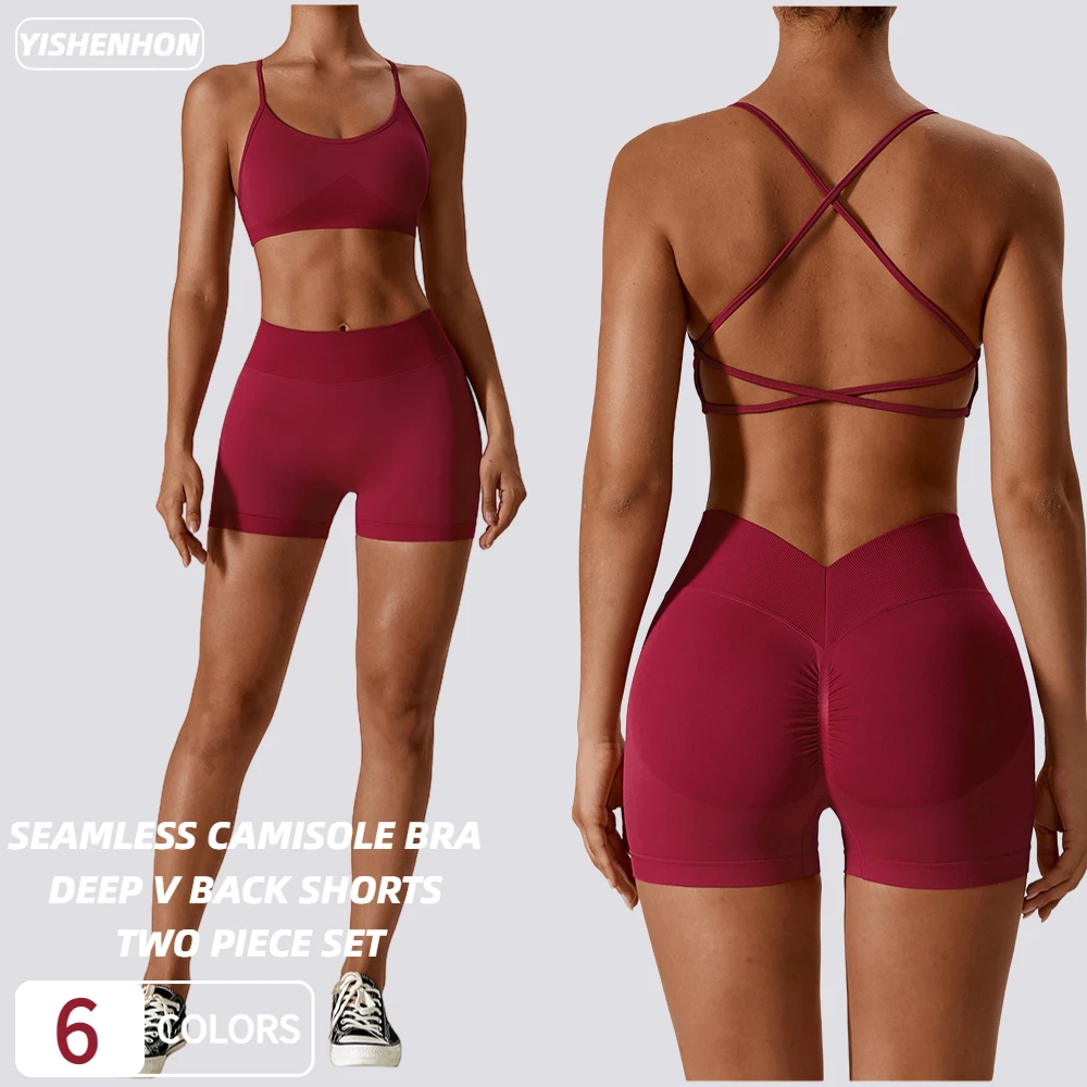 For YISHENHON Women's 2PCS Yoga Set High Impact Seamless Gym Fitness Bra High Waist Biker Shorts Scrunch Butt Bra Shorts Solid N