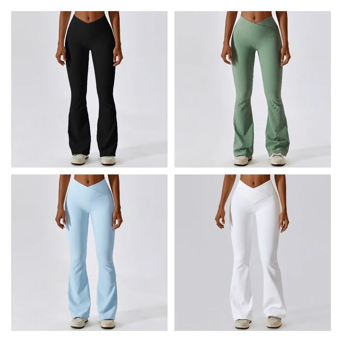 YISHENHON Recyclable Fabric Quick Dry Yoga V Waist Gym Leggings Running Workout Wide Leg Pants Flare Woman Sport Pants