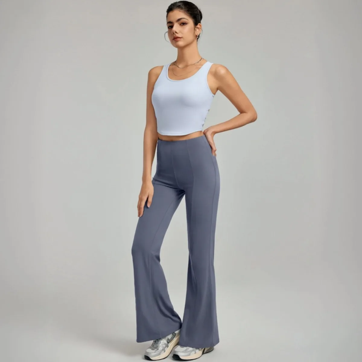 YISHENHON Recyclable Fabric Quick Dry Yoga V Waist Gym Leggings Running Workout Wide Leg Pants Flare Woman Sport Pants