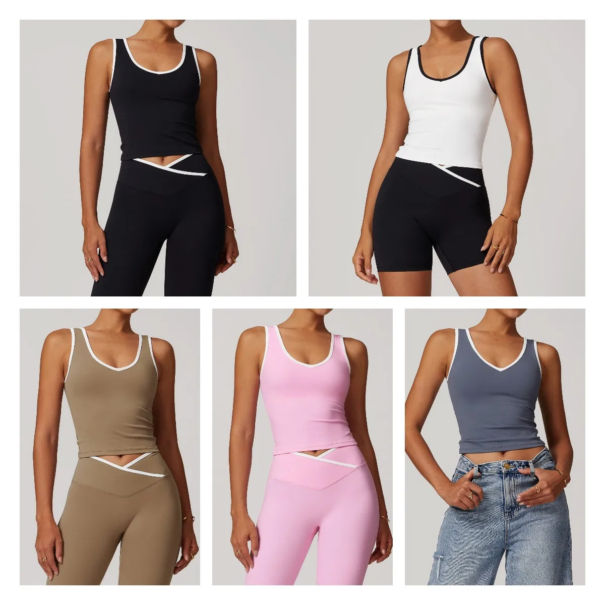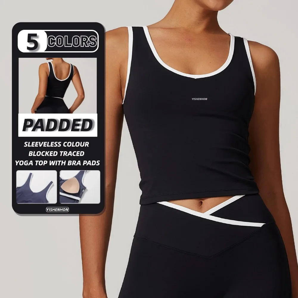 YISHENHON New Fashion Tight Nude Contrast Color Sports Bra Vest Women's Backless Yoga Vest Fitness Clothes Fitness Sports Top