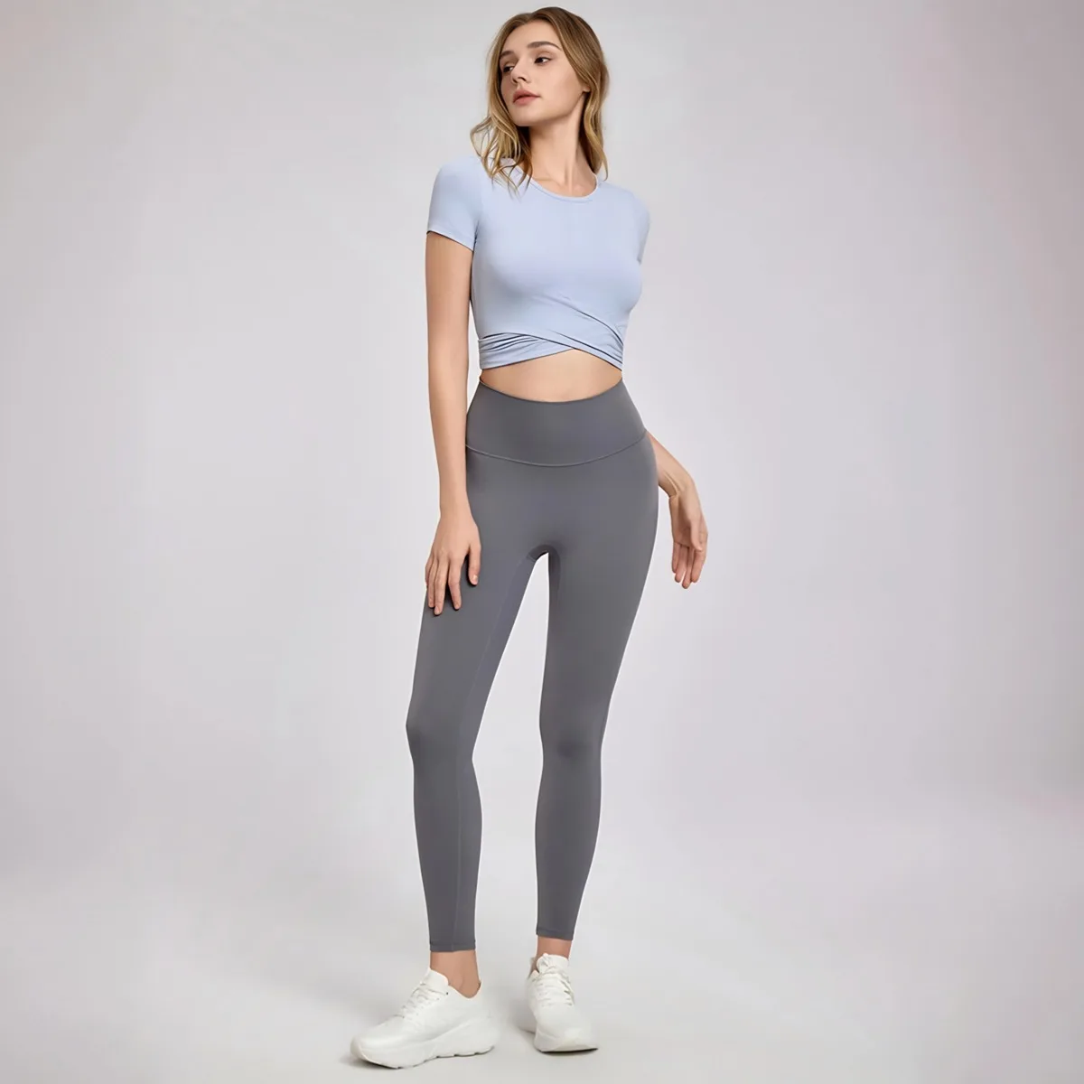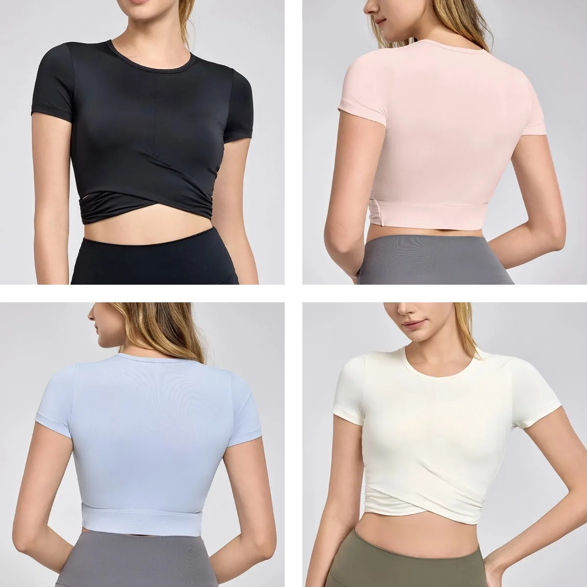 YISHENHON Women's Fitness Crop Top Advanced Sense Breathable Sports T-Shirt Cross Pleated Yoga Design Slimming Short Sleeves