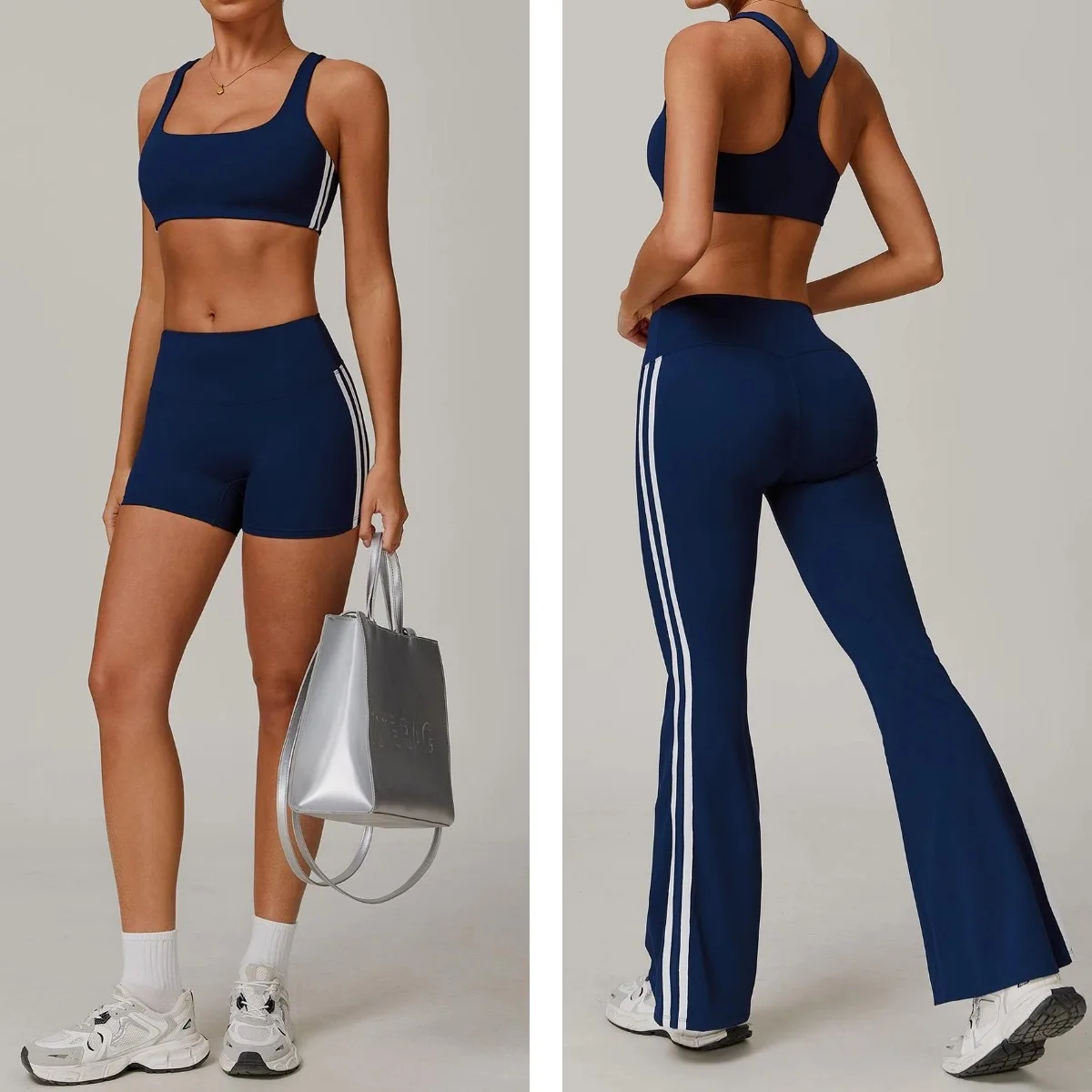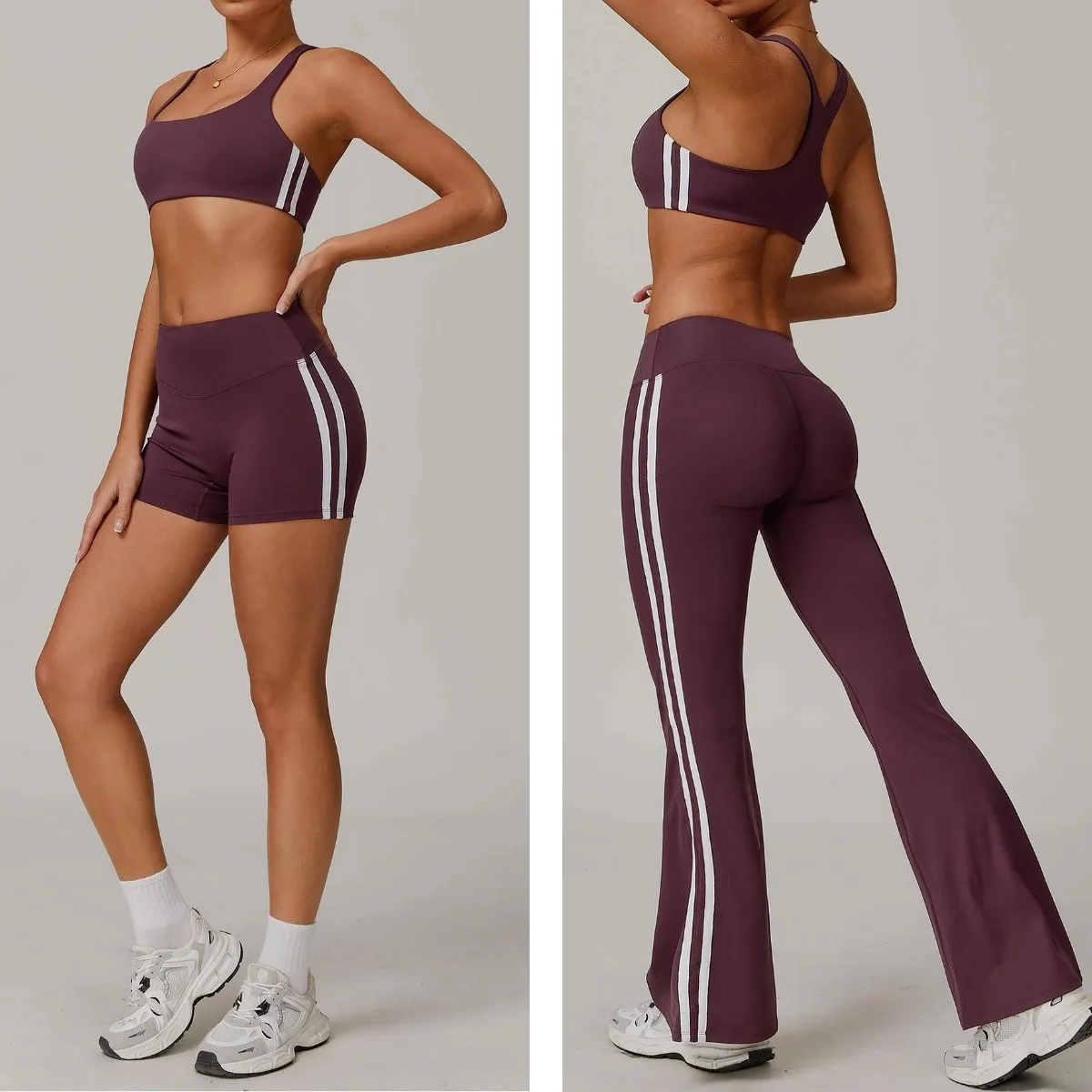 YISHENHON Recyclable Fabric Quick Dry Yoga V Waist Gym Leggings Running Workout Wide Leg Pants Flare Woman Sport Pants