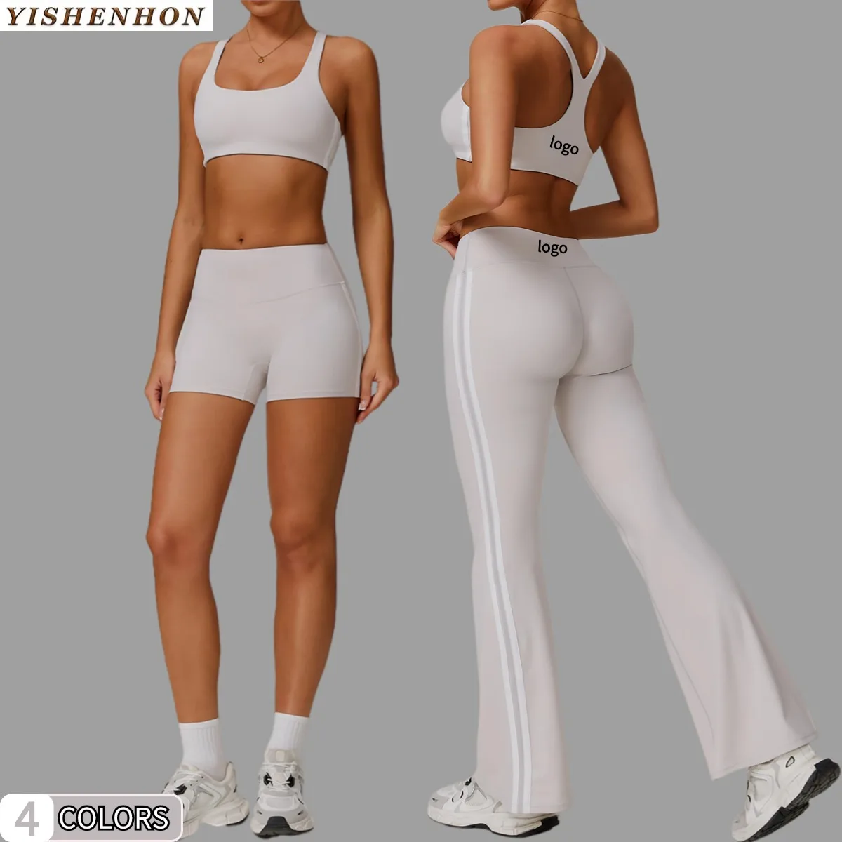 YISHENHON 2026 New Arrive Best Selling 4 Piece Yoga Sets Fitness Womens Custom logo High Waist Quick-Drying Sport Suits