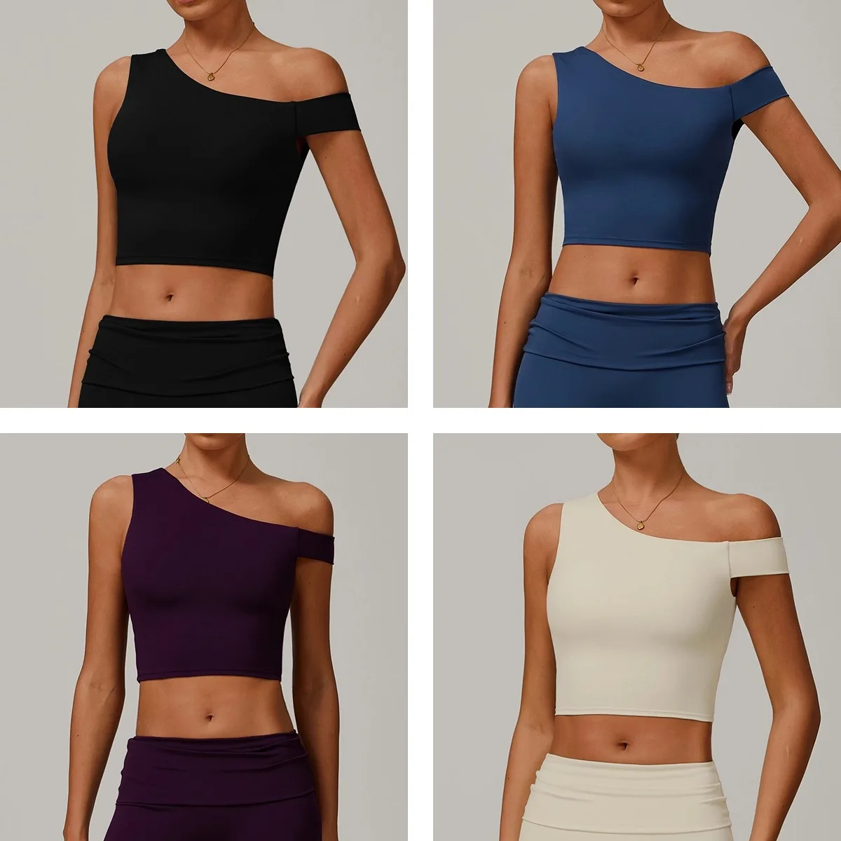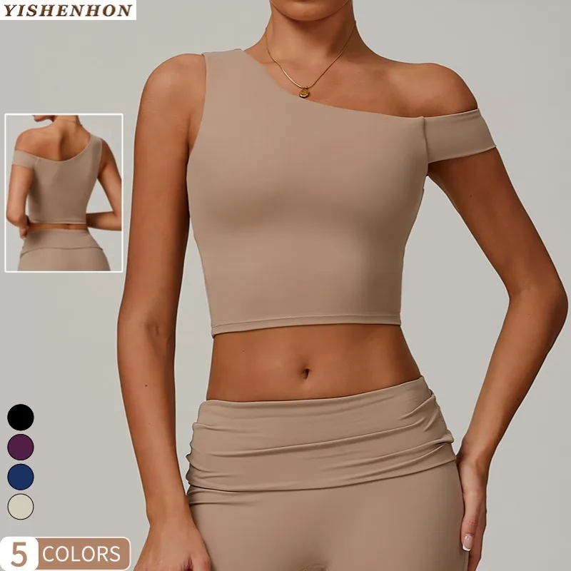 YISHENHON 2026 New Product Asymmetric Yoga Vest Women Irregular Oblique Shoulder Outside Wear Running Sports Fitness Underwear