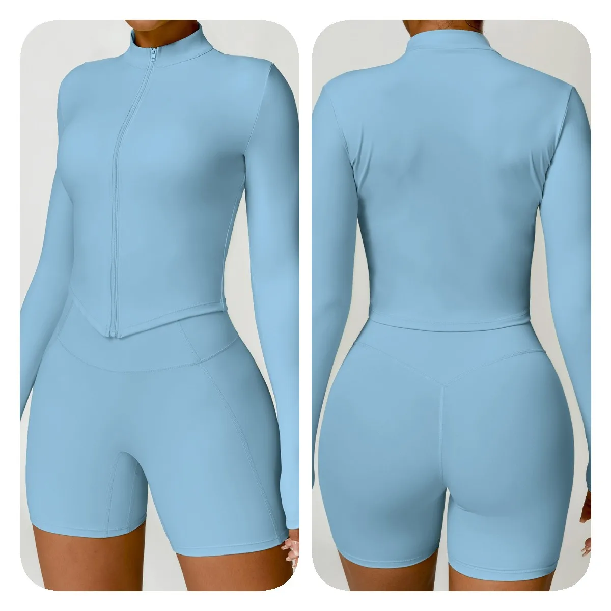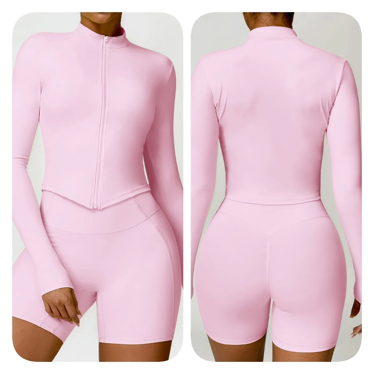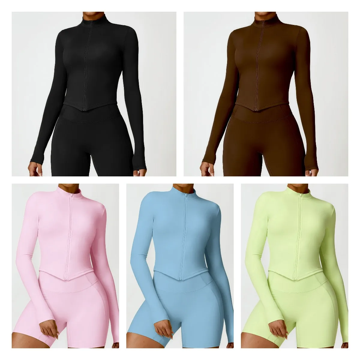 YISHENHON New Arrivals Quick-drying Women's Tight Running Sports Fitness Yoga Jacket Activewear Zip Long Sleeve Workout Crop Top