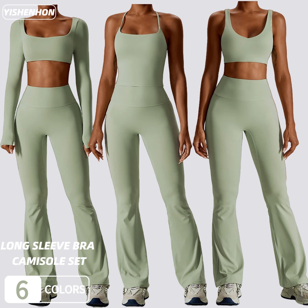 YISHENHON Recyclable Fabric Quick Dry Yoga V Waist Gym Leggings Running Workout Wide Leg Pants Flare Woman Sport Pants