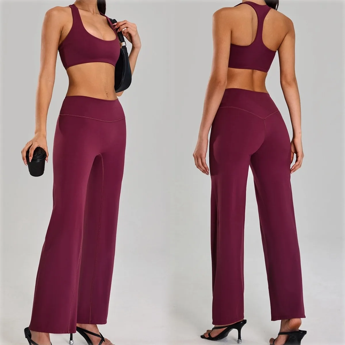 YISHENHON Recyclable Fabric Quick Dry Yoga V Waist Gym Leggings Running Workout Wide Leg Pants Flare Woman Sport Pants