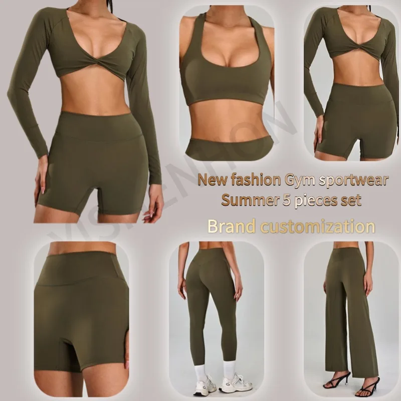 YISHENHON High-Intensity Five-Piece Set Slim High Waist Outdoor Running Fitness Wear Elastic Waist Yoga Clothing for Active