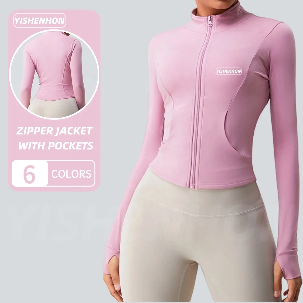 YISHENHON New Arrivals Quick-drying Women's Tight Running Sports Fitness Yoga Jacket Activewear Zip Long Sleeve Workout Crop Top