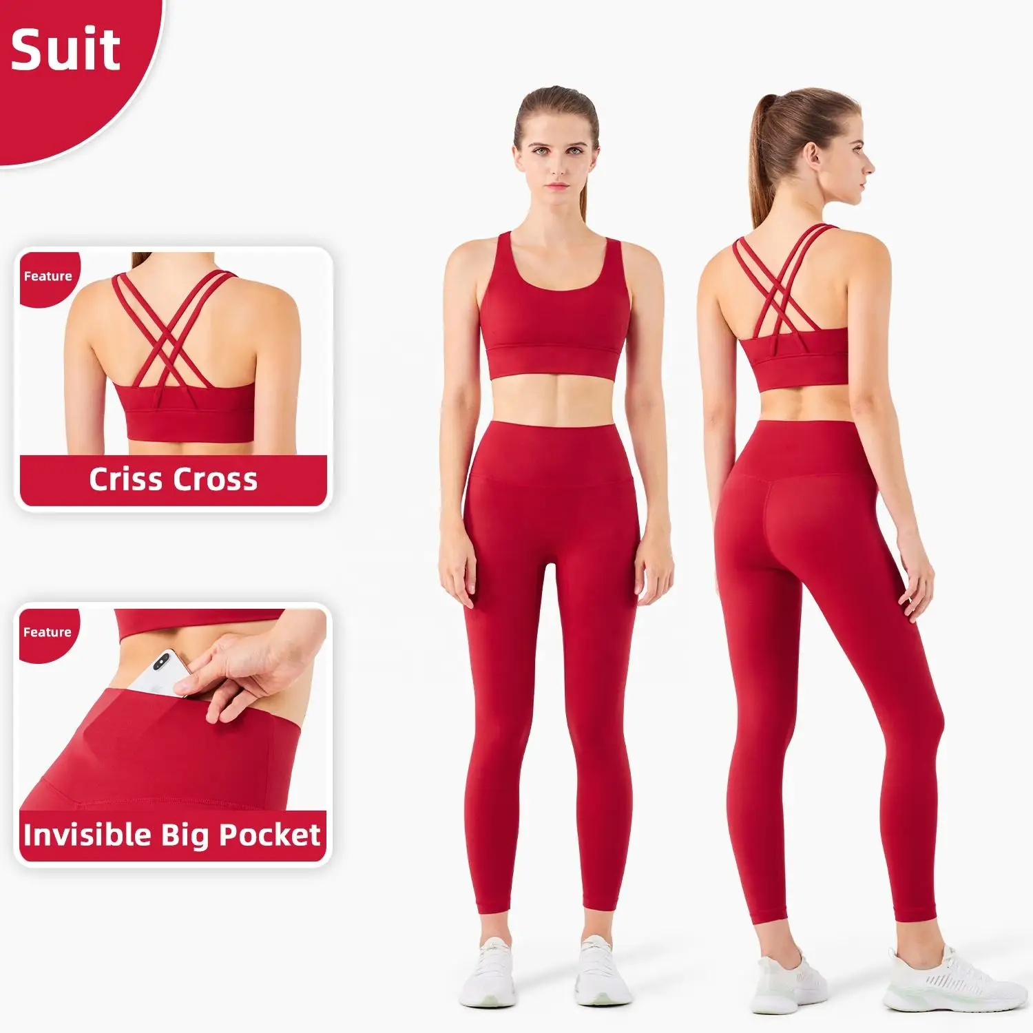 YISHENHON Women's Plus Size U-Neck Strappy Sports Bra Cross Back Wider Hem Nude Feeling Athletic Fitness Workout Yoga Bra Set