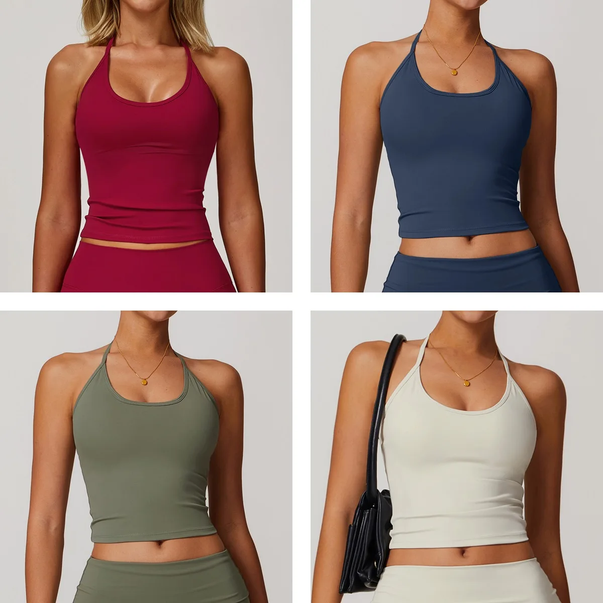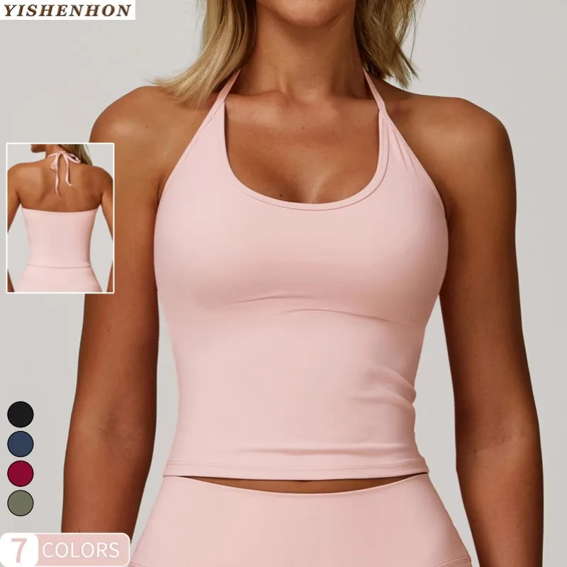 YISHENHON Summer Customized High Quality Lace-up Neck-hanging Yoga Vest for Womens Tight Quick-Drying Fitness Top Sport Bra