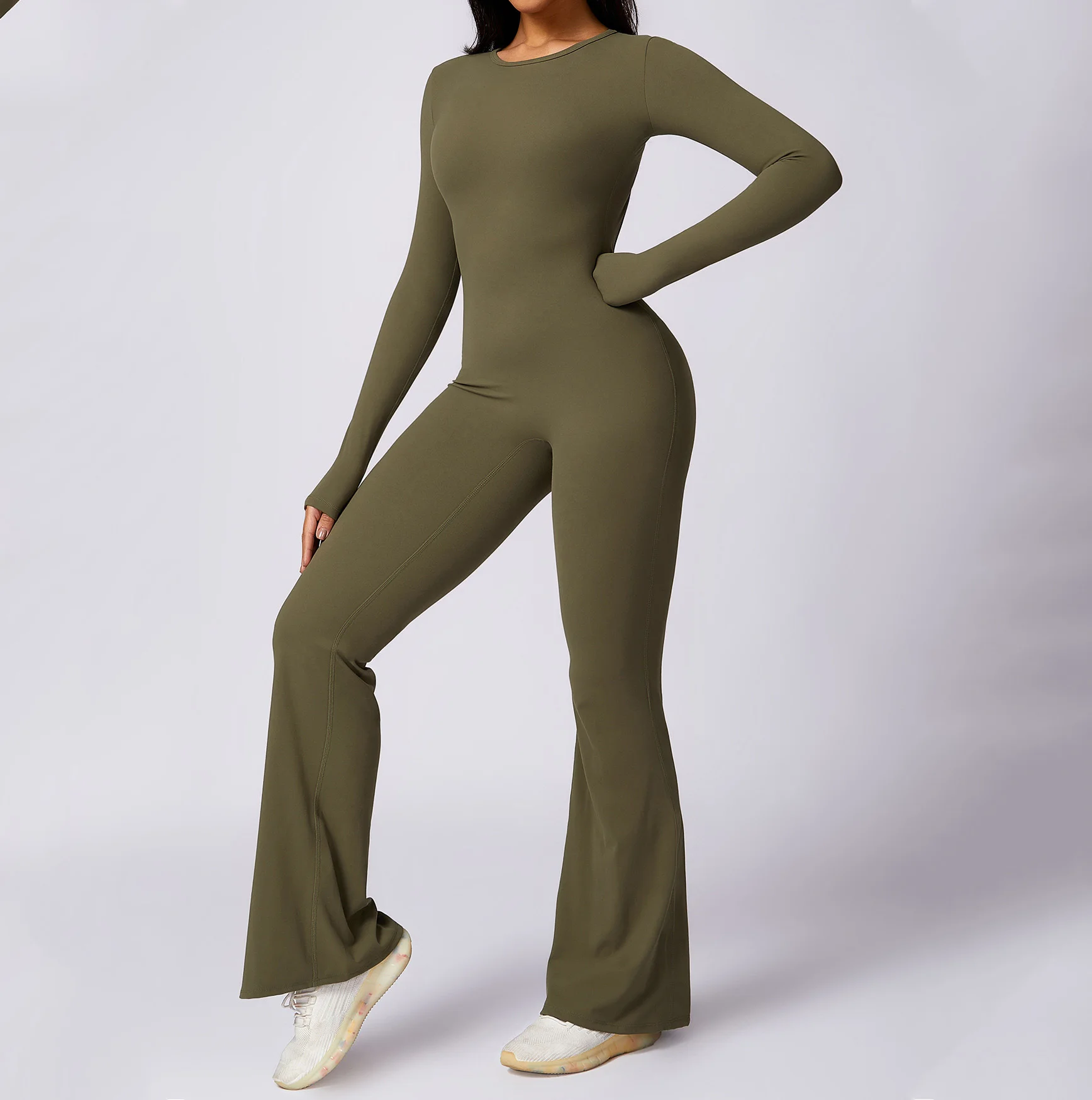 YISHENHON Recyclable Fabric Quick Dry Yoga V Waist Gym Leggings Running Workout Wide Leg Pants Flare Woman Sport Pants
