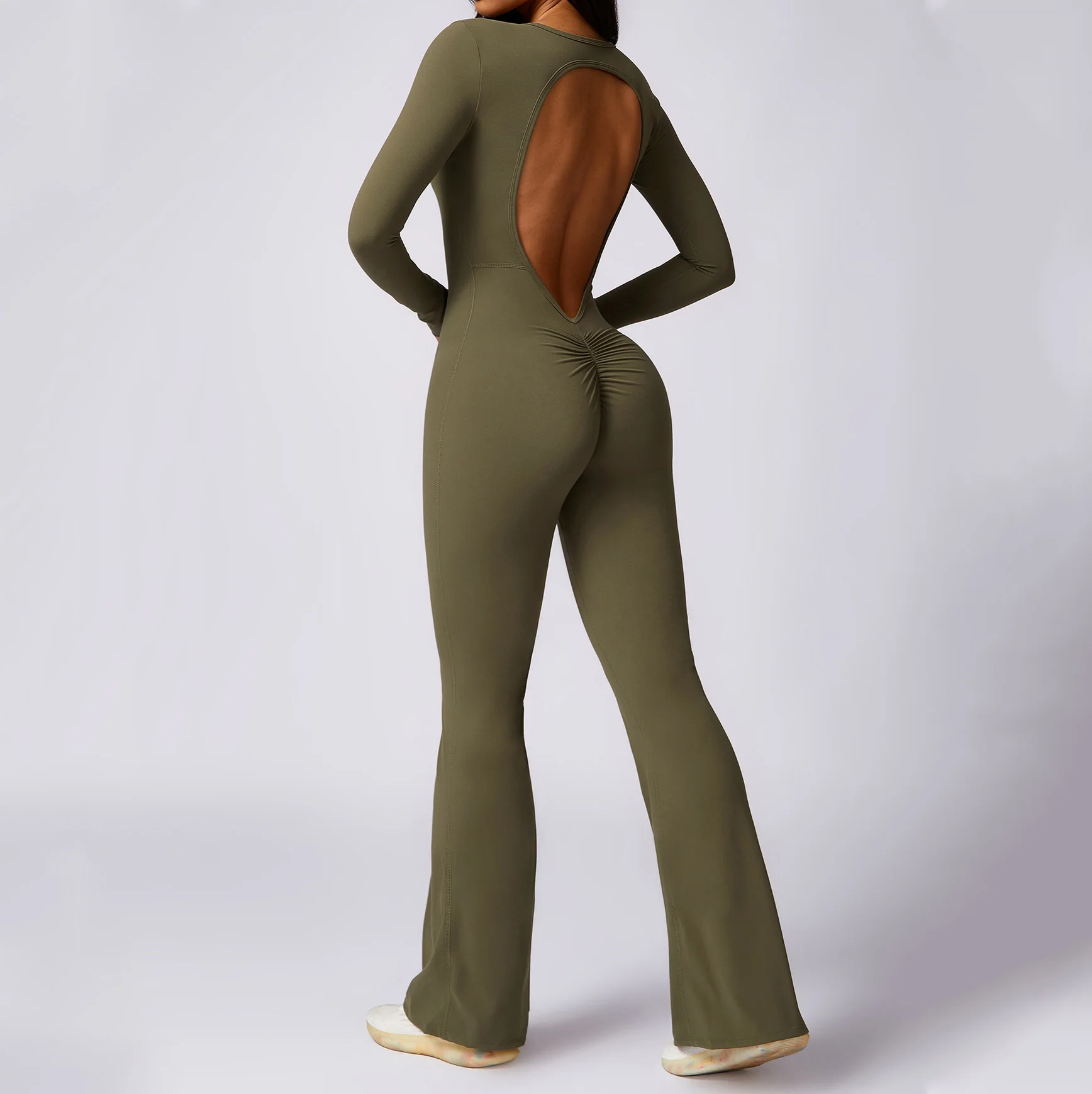 Women Playsuit Full Length Cut Out Back One Piece Gym Workout Clothing Activewear Yoga Fitness Jumpsuit