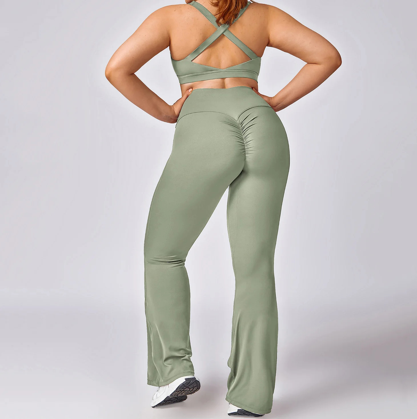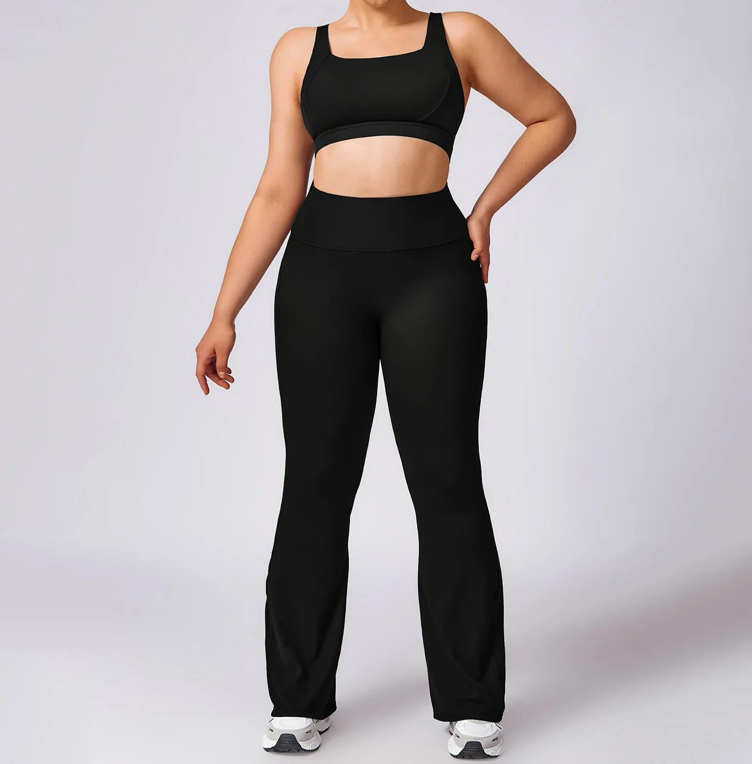 Plus Size Women Workout Outfit Sports Bra Scrunch Butt Flare Pants Yoga Suits Plus Size Gym Fitness Sets