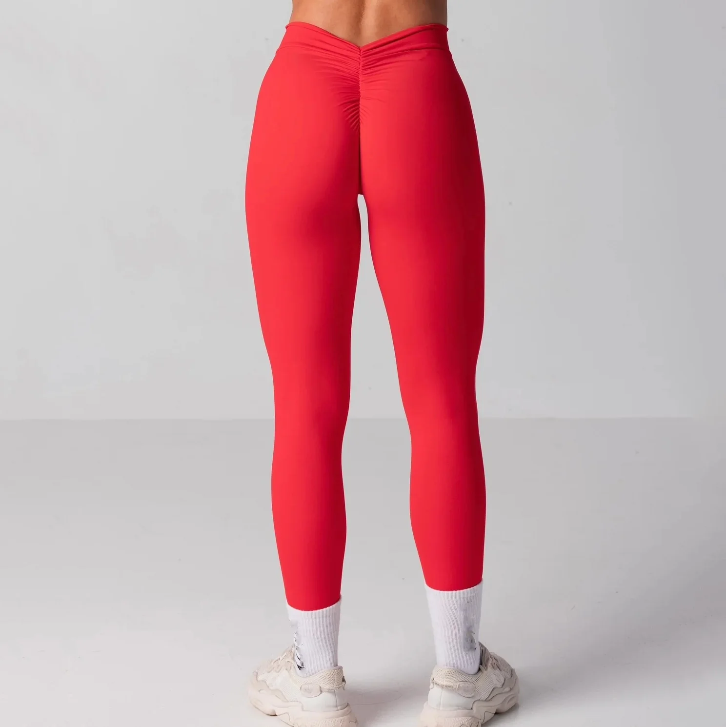 High Quality Training Wear Women's Clothing Wholesale v Cut Back Scrunch Stretch Soft Fitness Leggings High Waist Yoga Leggings