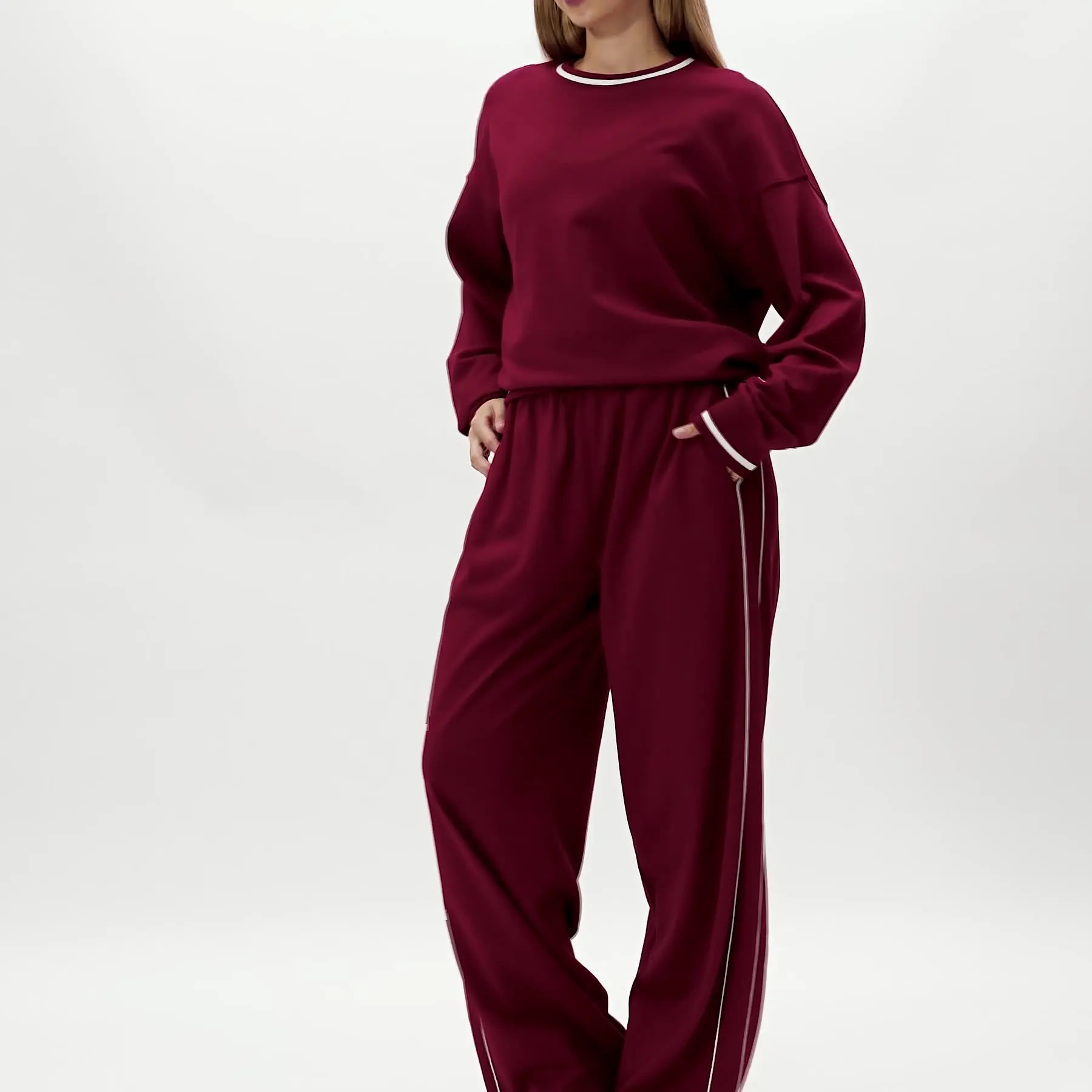 New Arrival Autumn Contrast Sweater Long Sleeve Loose Round Neck Fashion Sweater Outdoor Leisure Windproof Sports Top