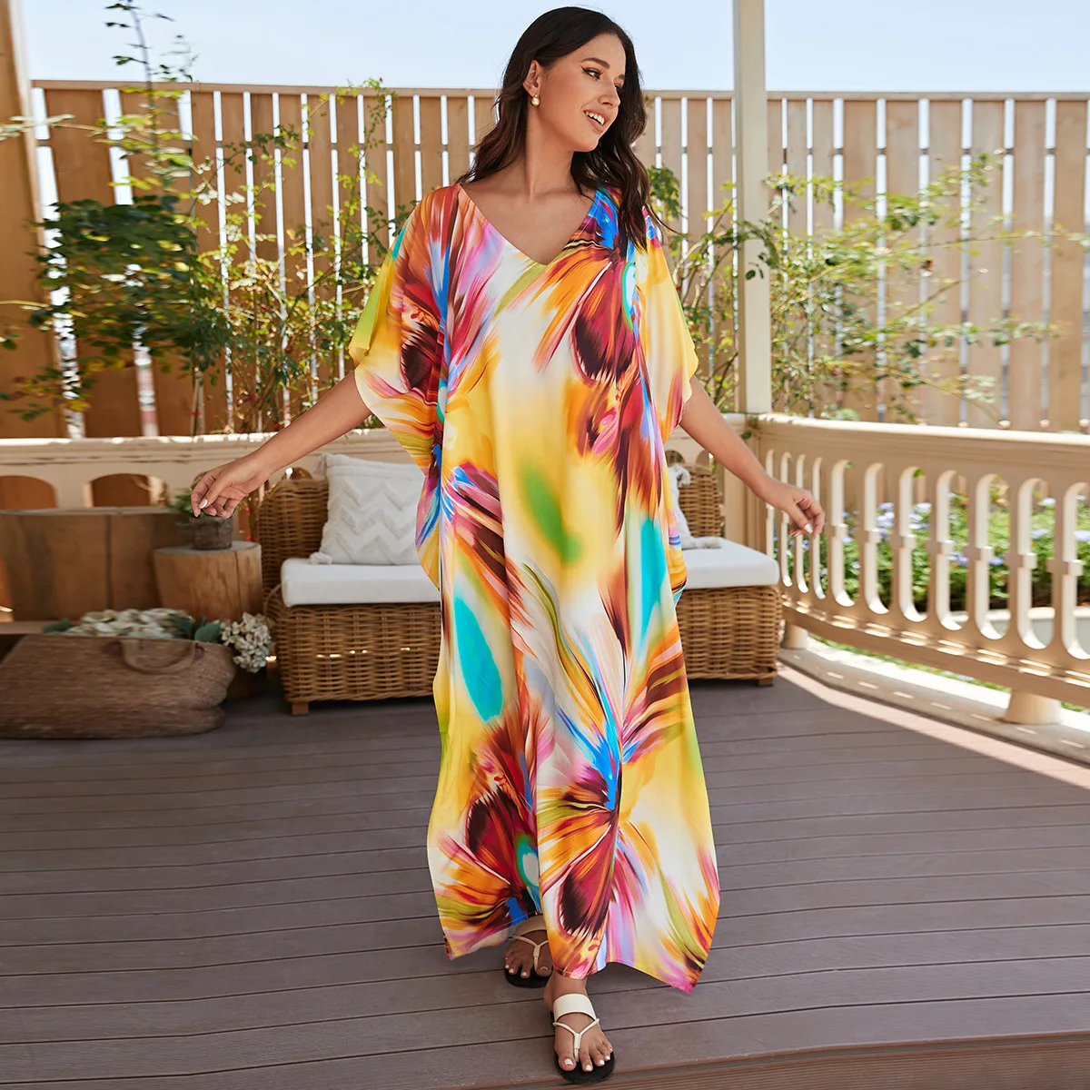 2026 Beach Printing Elegant Kaftan Home Wear Kaftan Dresses Women