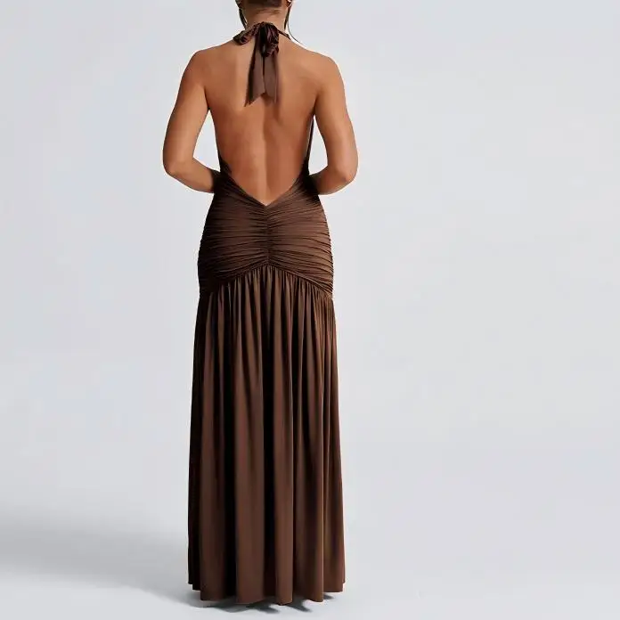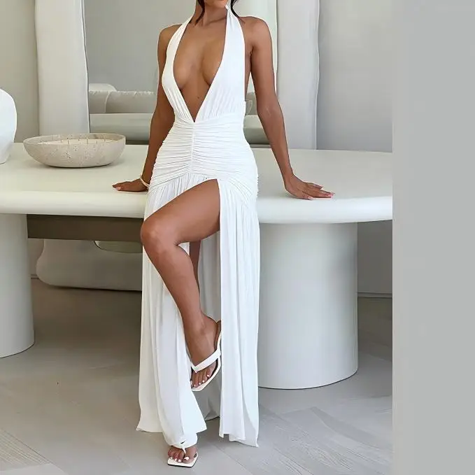 Halter V-Neck High Waist Ruffles Slit Dress Elegant Evening Gown Dress 2026 Sexy Luxury Evening Dresses