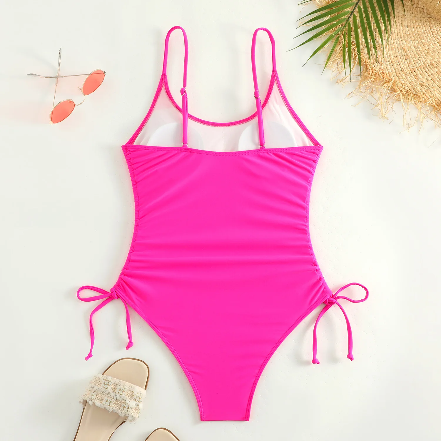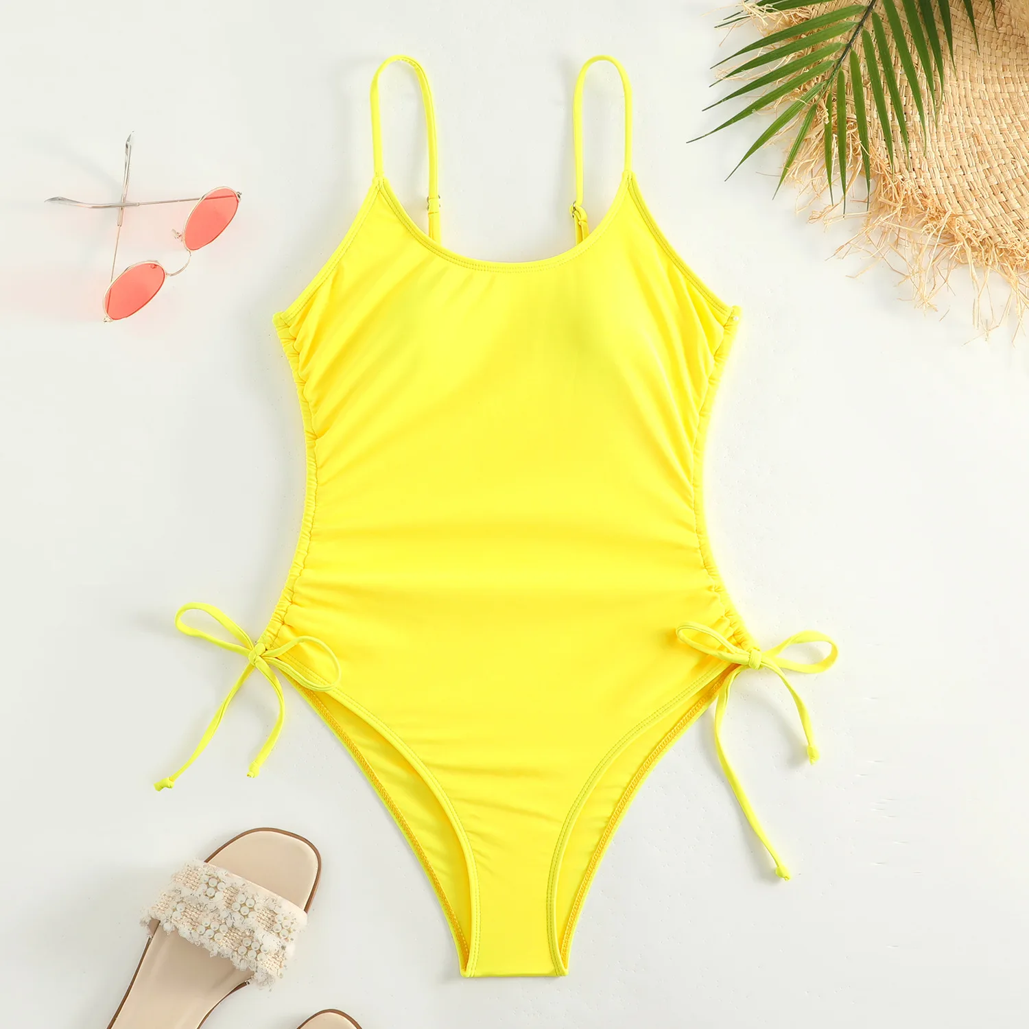 One Piece Sexy Solid Pleated Backless High Waist Tank Breathable Swimsuit