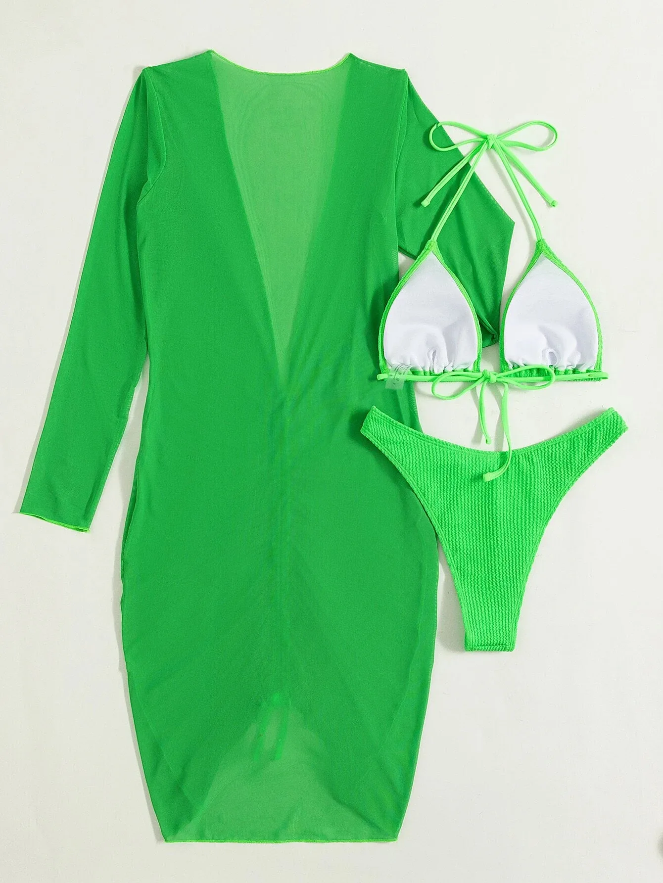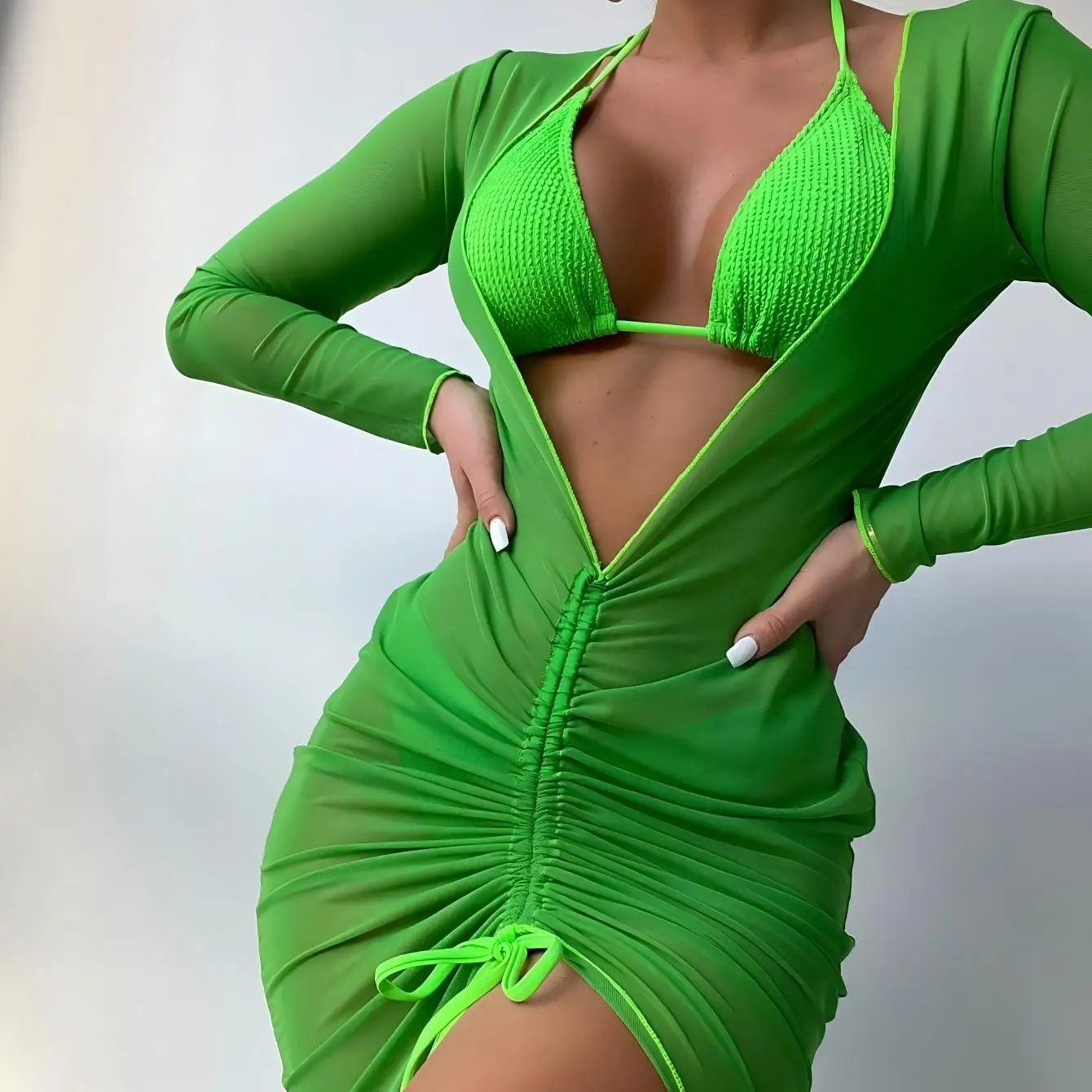 Long-Sleeved Smock and Fashionable Three-Piece Breathable Polyester/Spandex Women's Swimsuit Set