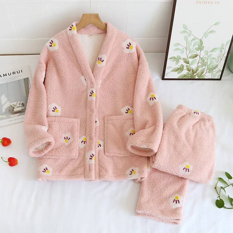 Customize Pyjamas Sleepwear Manufacturers Flannel Pajamas Long-sleeved Trousers Two-piece Thick Warmth Cute Soft Loose Homewear