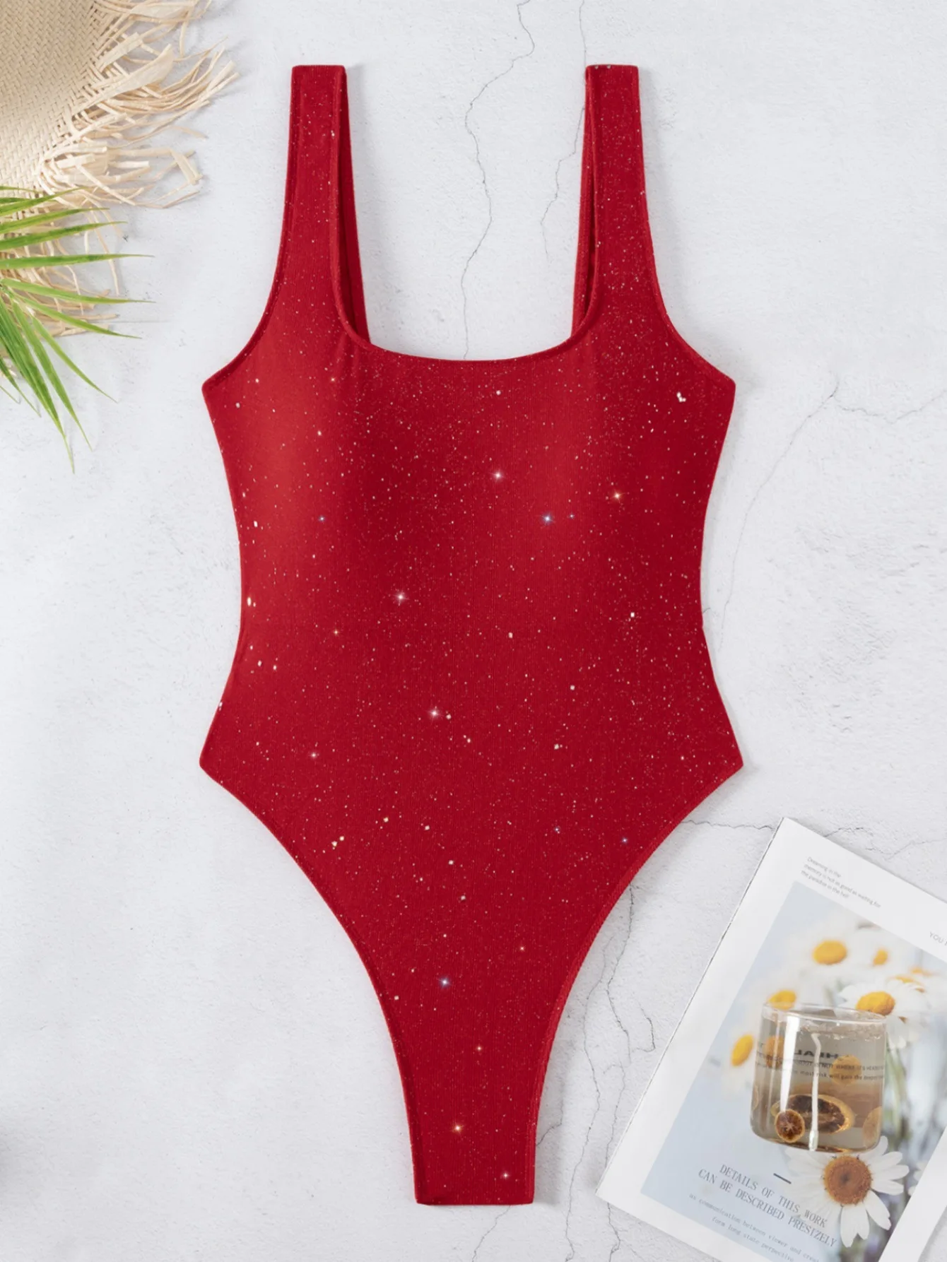 Factory Wholesale Custom Logo Swimwear Women's Shiny Lurex One Piece Swimsuit Square Neck Tummy Control Backless Bathing Suits