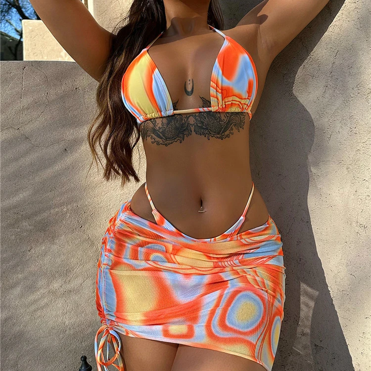 Lady Triangle Top Brazilian 3 Piece Swimsuit Bikini Set With Cover up