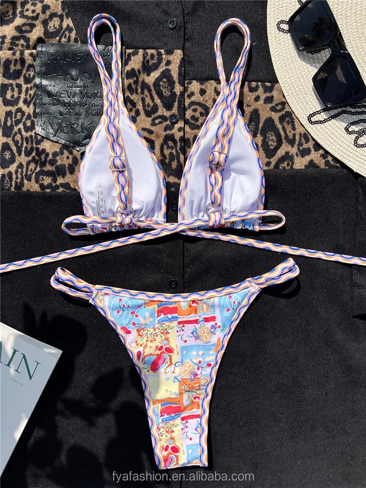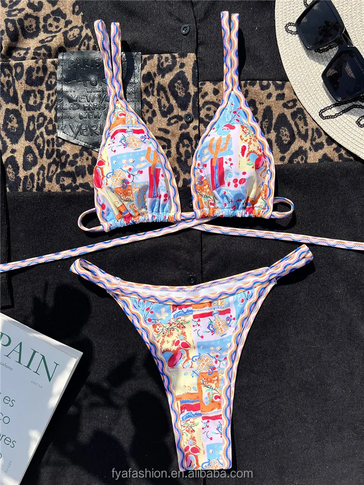 MLY Ruffle Bikini Summer Two Piece Suit Sexy Swimwear Bandage Biquini Triangle Swimsuit Printed Bathsuit