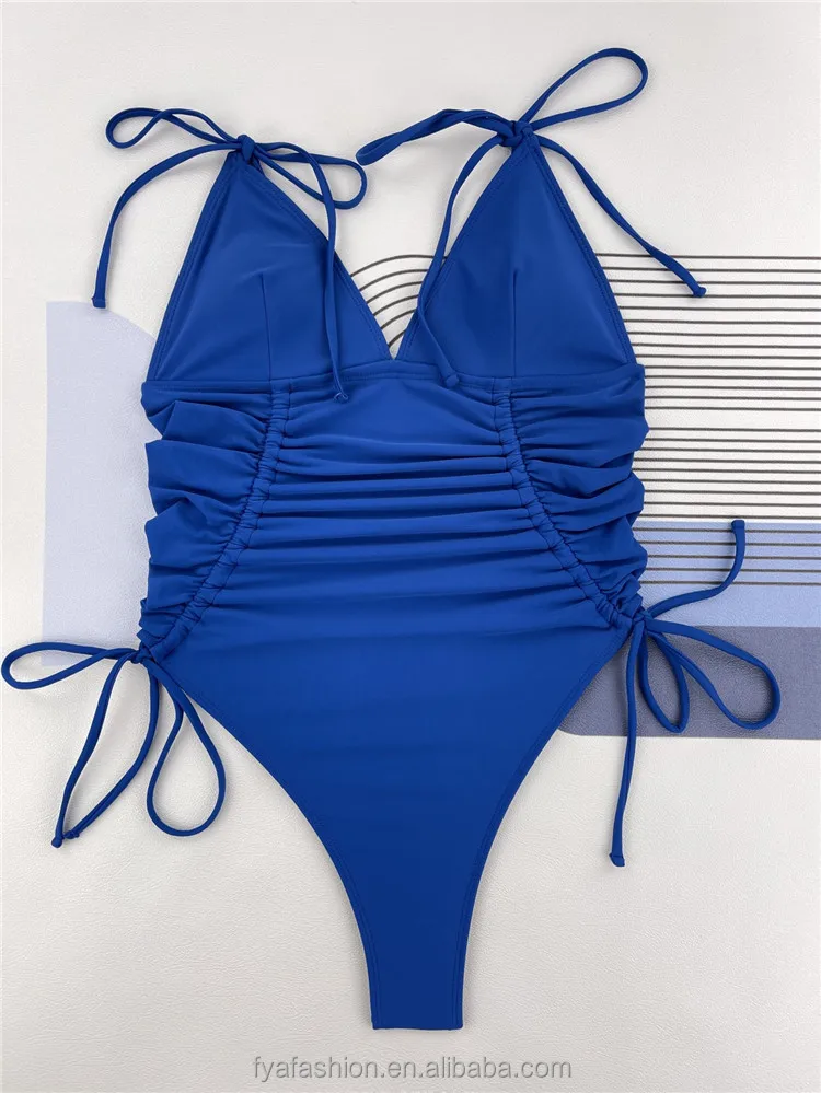 2023 Drawstring Pleats Sexy High Waist Women Swimwear One Piece Swimsuit