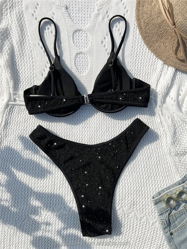 Custom Design 2023 Woman Underwire High Leg Sexy Bikini Shiny