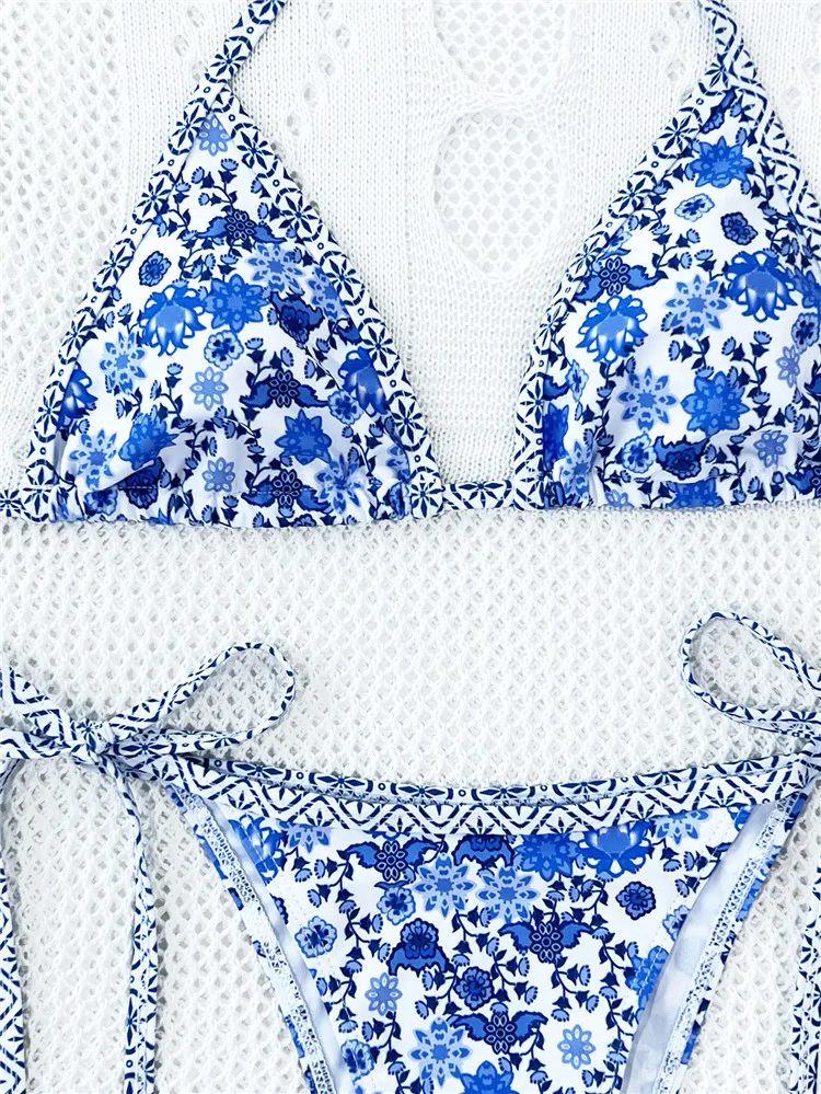 MLY Ruffle Bikini Summer Two Piece Suit Sexy Swimwear Bandage Biquini Triangle Swimsuit Printed Bathsuit