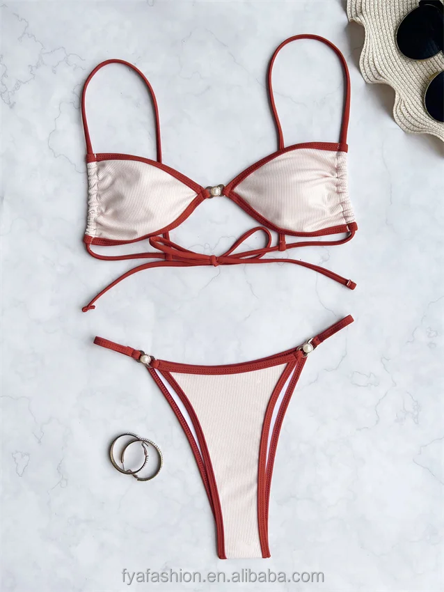 Custom Rhinestone Thong Bikini Women Micro Swimwear Sexy Girls in Mini Pearl Swimsuit